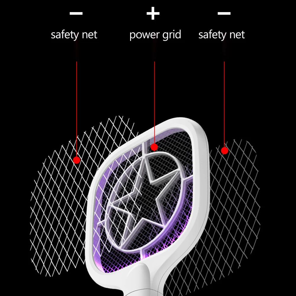 2 в 1 3000 В Электрическая мухобойка для насекомых с УФ-лампой USB 1200 мАч