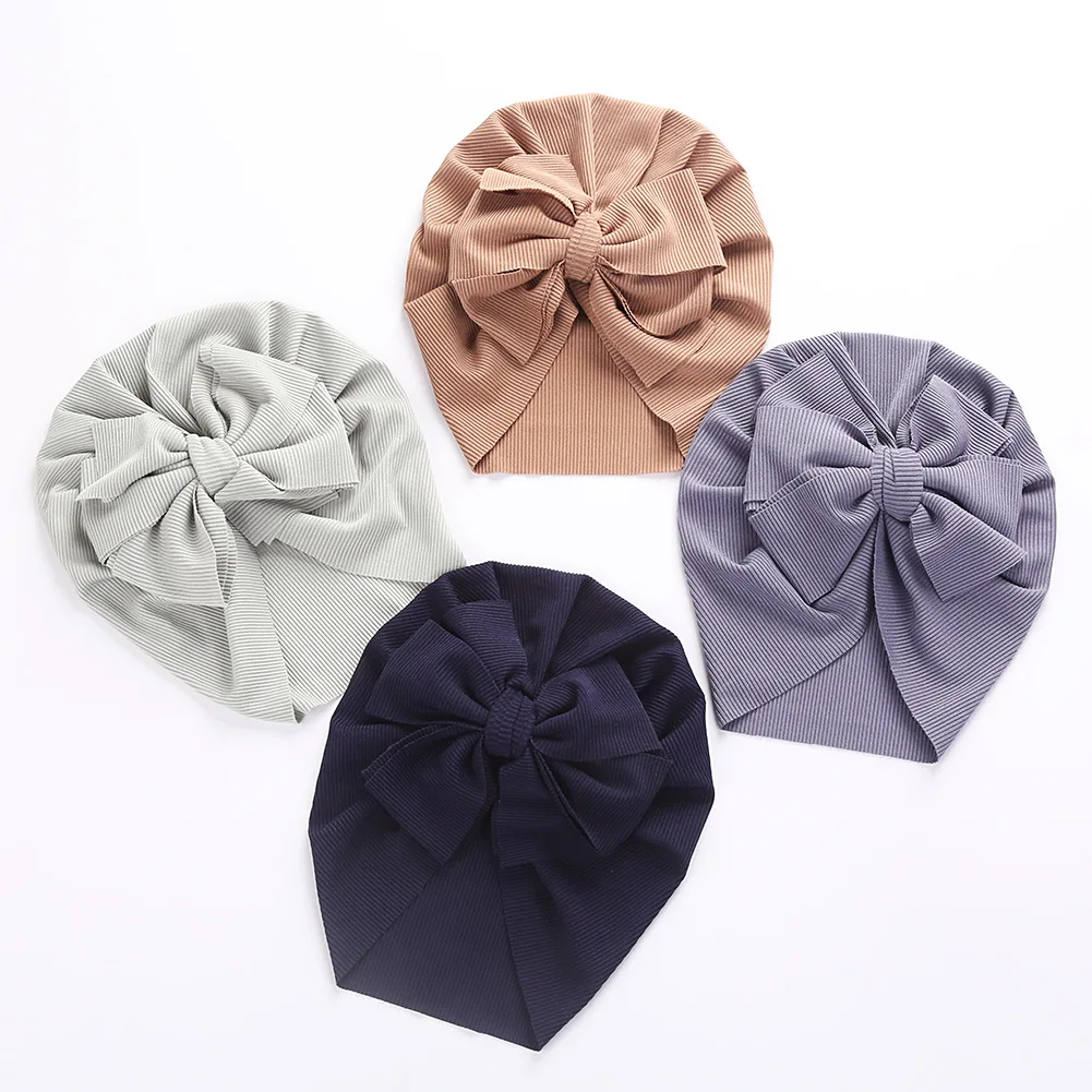 Шапка-тюрбан детская однотонная с большим бантом, мягкая эластичная шапочка для маленьких девочек, на весну, лето и осень