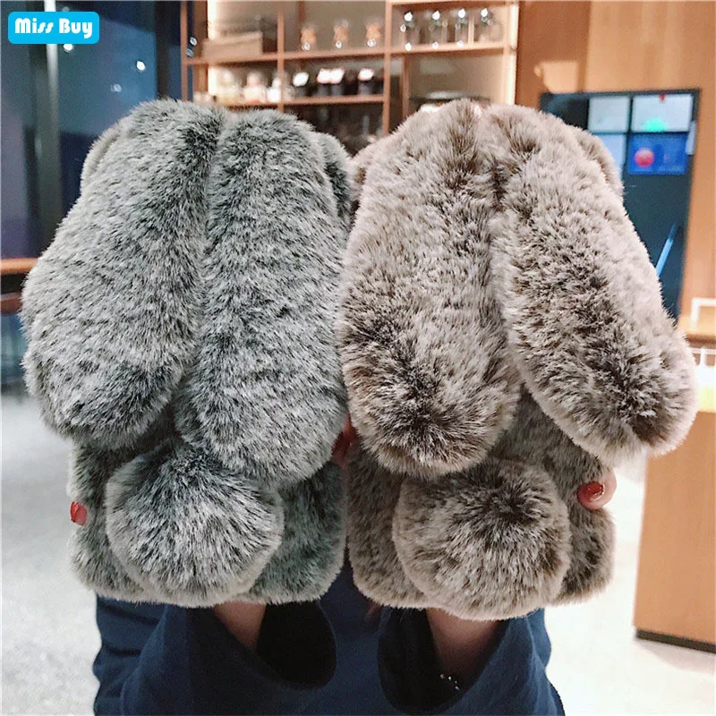 6,3 "для Xiaomi Redmi Note 7 Чехол плюшевый кролик теплый мех волос...