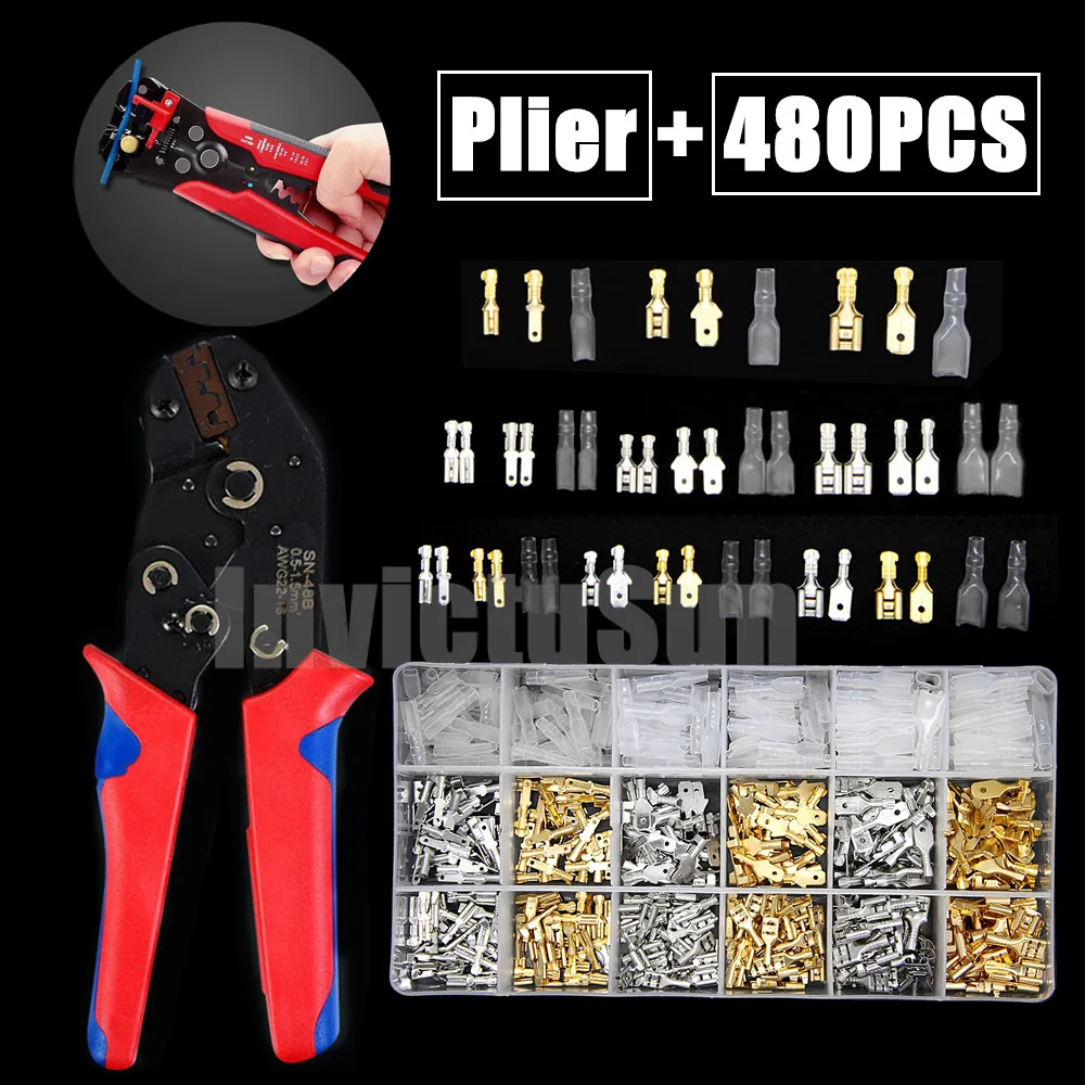 480 шт. 2,84,86,3 мм Лопата для обжима терминалов универсальный уплотнение Весенняя штепсельная вилка с изоляцией электрические соединители проводов SN48B плоскогубцы комплект
