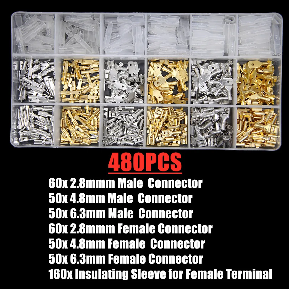 480 шт., универсальные обжимные клеммы для проводов, 2,84,86,3 мм