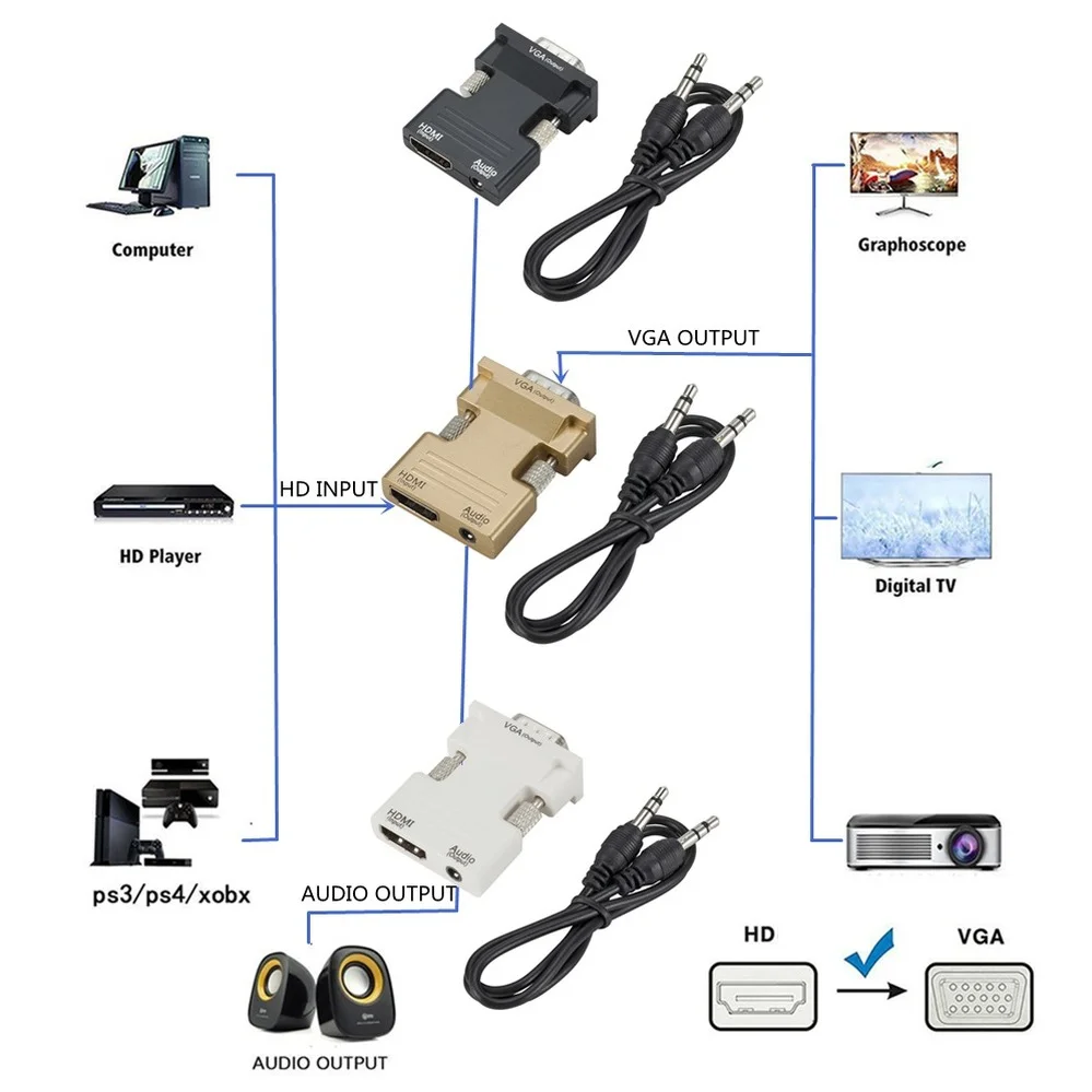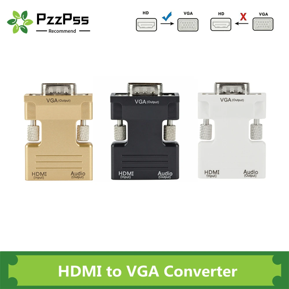 Переходник PzzPss HDMI мама-VGA папа, 3,5 мм, аудиокабель, адаптер 1080P FHD, видеовыход для ПК, ноутбука, телевизора, монитора, проектора