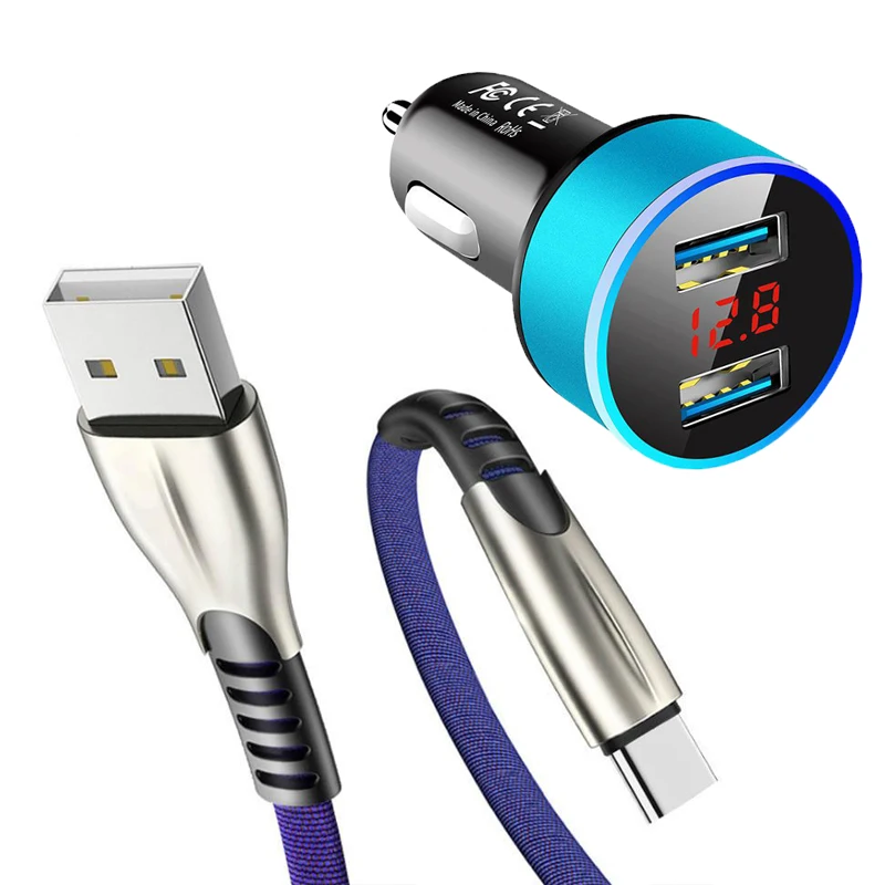 Автомобильное зарядное устройство с двумя USB-портами, светодиодный...