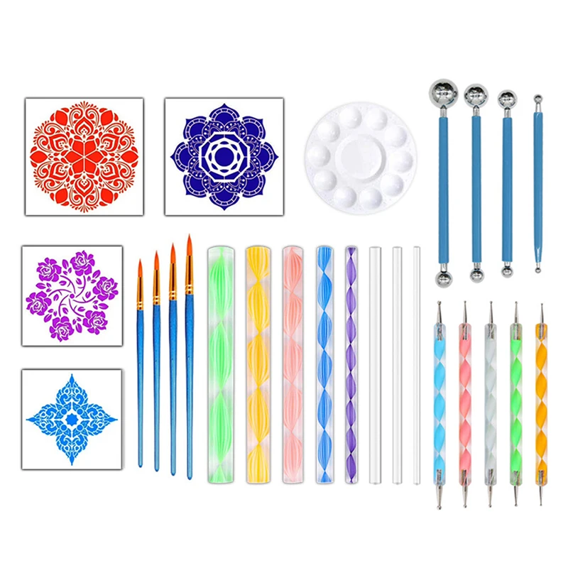 Особенности:1. Профессиональный набор для рисования. Все инструменты для рисования изготовлены из высококачественного материала, гарантированное качество, безопасны в использовании.2. Эти инструменты могут использоваться для рисования и создания невероятных мандалов на тканевом искусстве, рок, бумаге, холсте, ткани, металле, мебели и стеновом искусстве.3. Полный набор инструментов для рисования. В том числе 26 инструментов. Каждая ручка имеет гладкую поверхность, которая очень подходит для клецки. Шариковая ручка из нержавеющей стали не загрязняет и не ржавеет. Легко чистить влажной тканью. Легкий и портативный.4. Для любителей живописи в качестве подарка, сделай сам Нейл-арт или рукоделие Подарочная упаковка Украшения, создание точечных узоров и любые другие поделки.Спецификация:Материал: пластикЦвет: как показано на фотоРазмер упаковки: 25*25*5 смУпаковочный лист:4 x синий резиновый шариковый стилус5 x инструмент для обработки цветов8 x акриловая палочка4 кисти4 x Мандала Цветочная форма