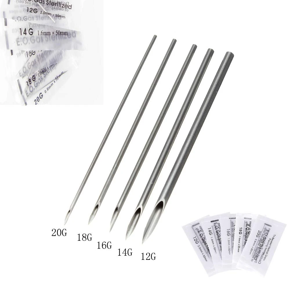 Носа пункционная игла 50100 шт 16 г смешанные размеры тело пункционная игла полые иглы пирсинг для ушей и тела, носом, пупком младенца ниппель