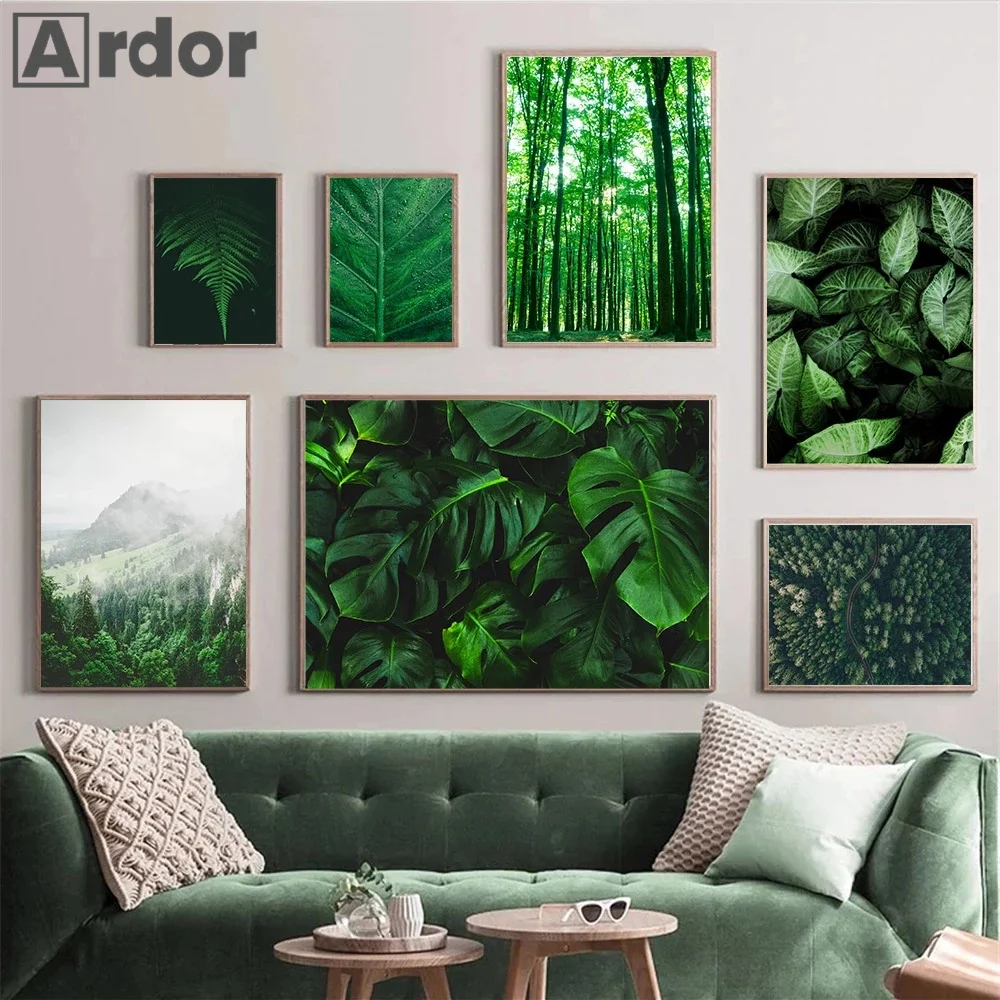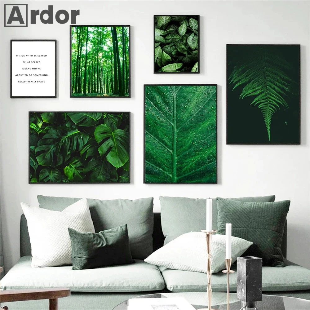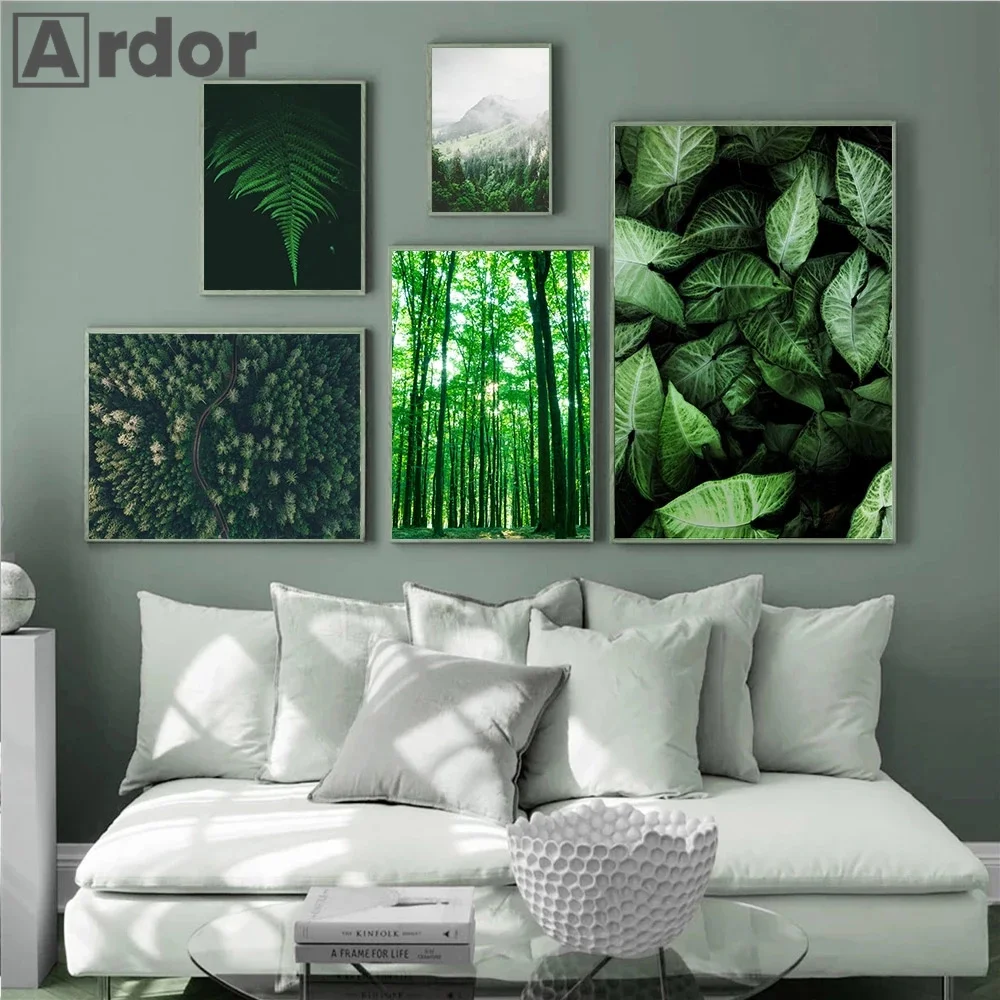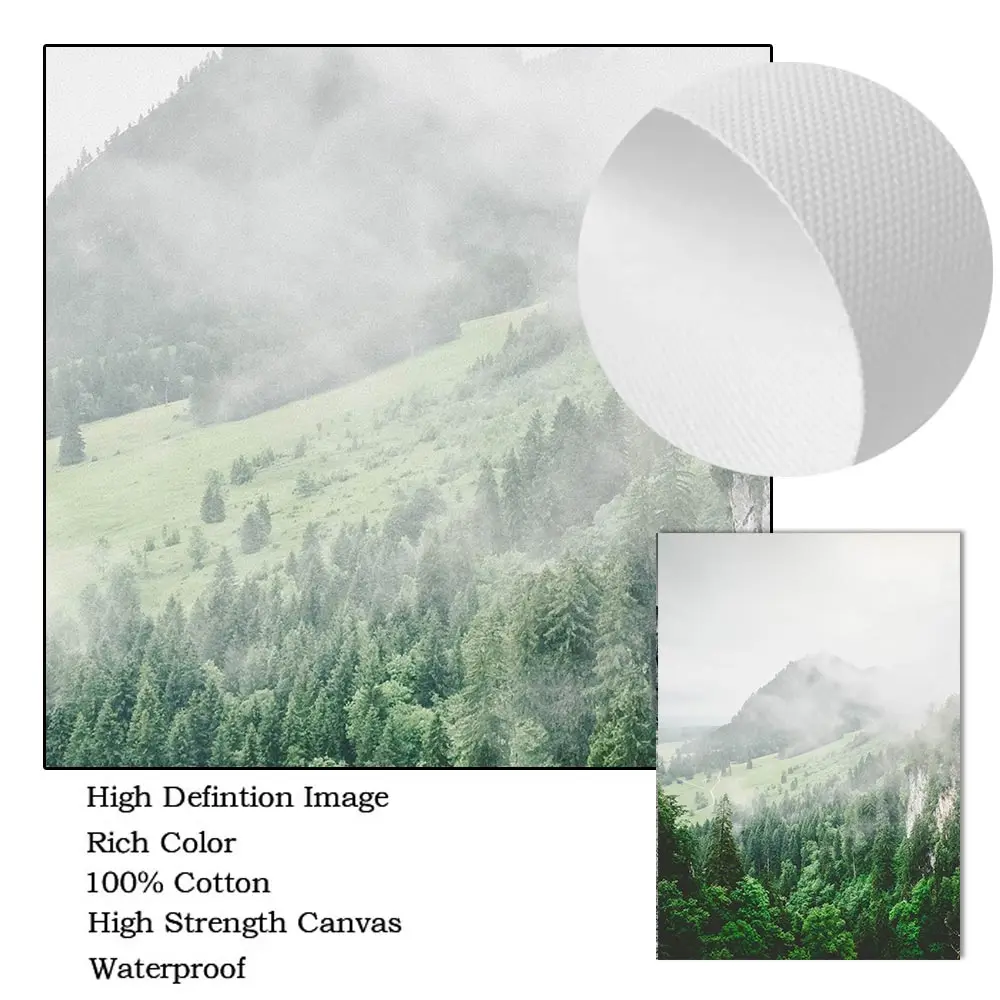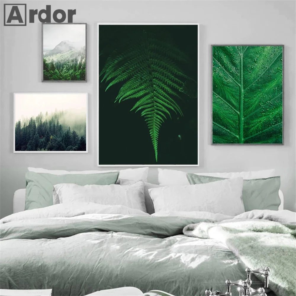 Плакаты и принты с зелеными листьями леса, Настенная картина с изображением тумана и гор, Картина на холсте, скандинавские цитаты, настенные картины для декора гостиной