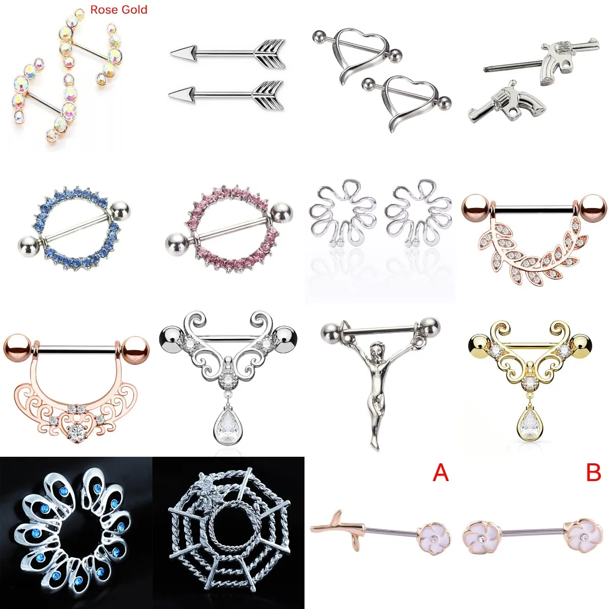 2018 модные кольца из нержавеющей стали для пирсинга сосков с розам...