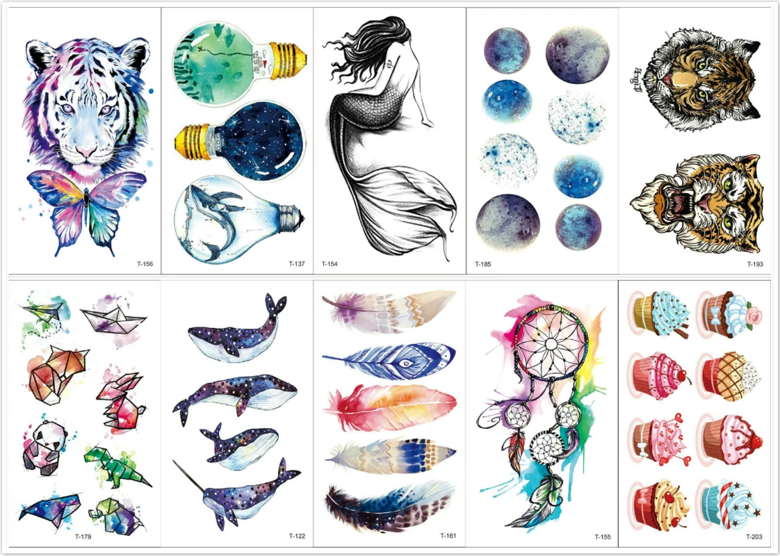 Водостойкие временные 3d татуировки, наклейки на боди-арт, красочные акварельные панды, лиса, кролик, искусственные Блестящие Татуировки, женские татуировки