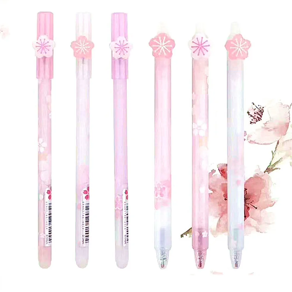 2 шт. розовый узор цветущей сакуры со стирающимися чернилами гелевая ручка синие чернила цифровым пером Kawaii пишущие инструменты принадлежности для студентов канцелярские принадлежности