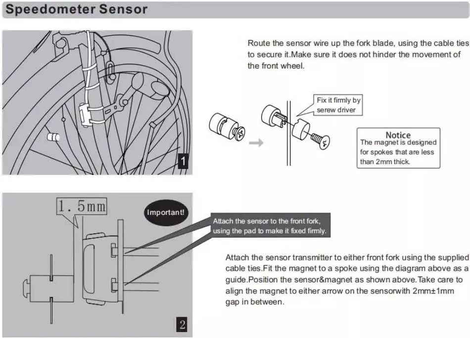 Ну что, работает. Инструкция на английском языке. Немного нужно с переводчиком посидеть и становится понятно что куда вообще. Можно отдельно скидывать показания одометра ODO и отдельно показания расстояния поездки DIST. Показания дист сбрасываются вместе с показателями максимальной скорости MXS, средней скорости AVS и времени поездки TM. Важно не путать при сбросе ODO или DIST. Чтобы настроить размер колеса и интервалы ТО нужно вытащить батарейку и снова вставить. Первая появится настройка колеса затем настройка интервала ТО, затем метры или километры. При этом у компьютера нет постоянной памяти, т.е. если вытащить батарейку и снова поставить то все показания сбросятся. И ещё тут установлена батарейка а не аккумулятор, нет возможности заряжать на ходу. В общем компьютер годится в качестве спидометра, одометра и показателя параметров поездки. Если нужно больше то нужно покупать другой, более дорогой компьютер.
