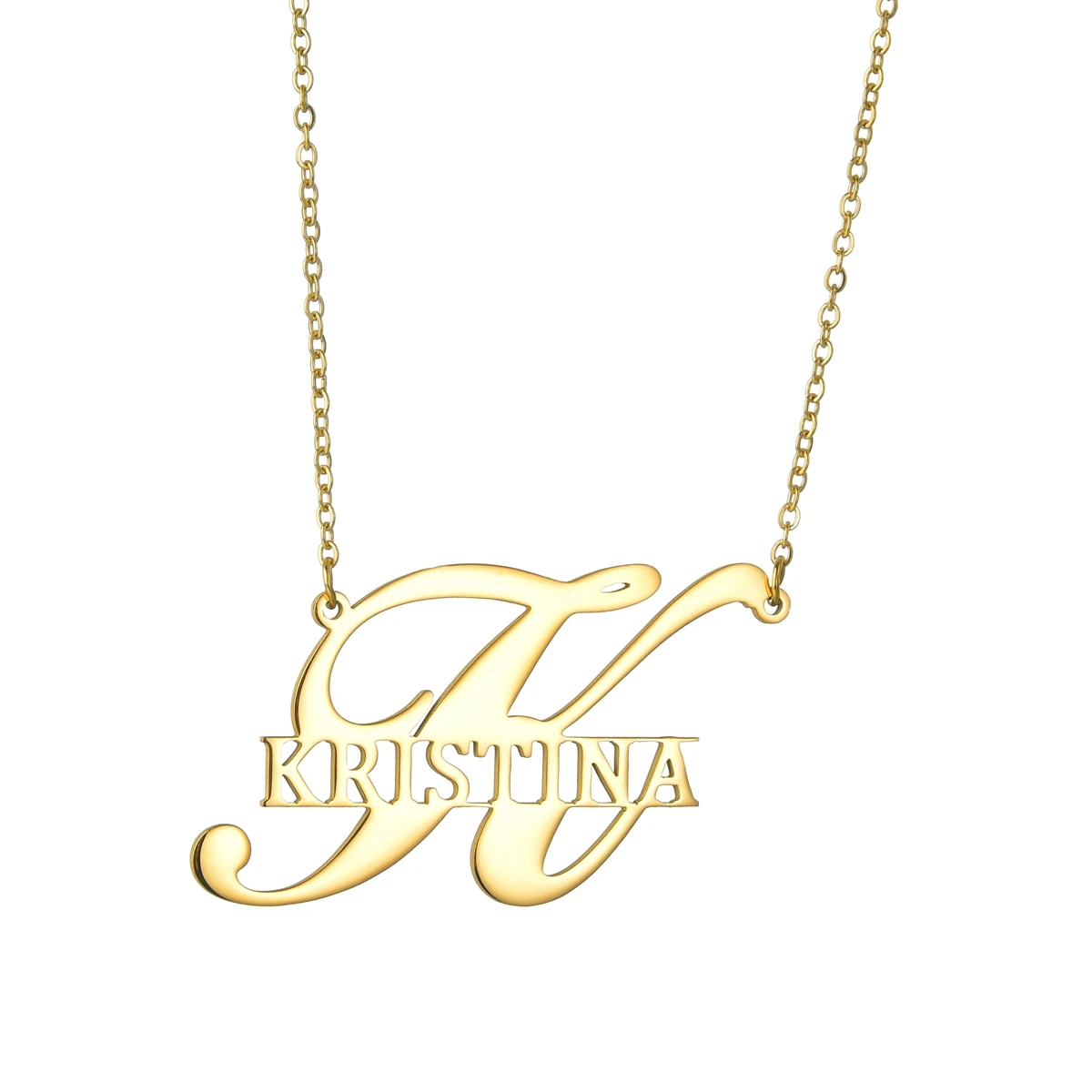 Имя:Большая буква новая индивидуальная Мода из нержавеющей стали имя ожерелье персонализированные буквы золотой кулон табличка для женщин подарок