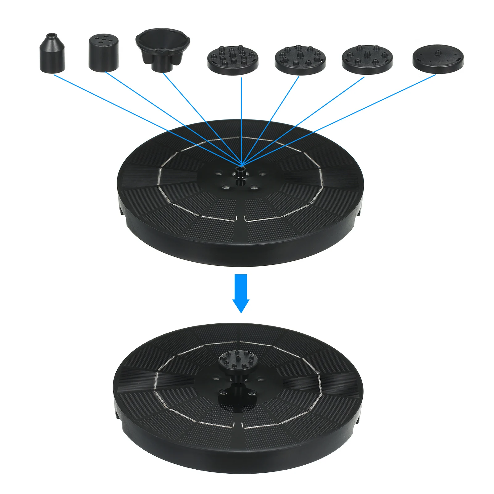 Солнечный фонтан с 6 насадками, 3,8 Вт, 2200 мАч