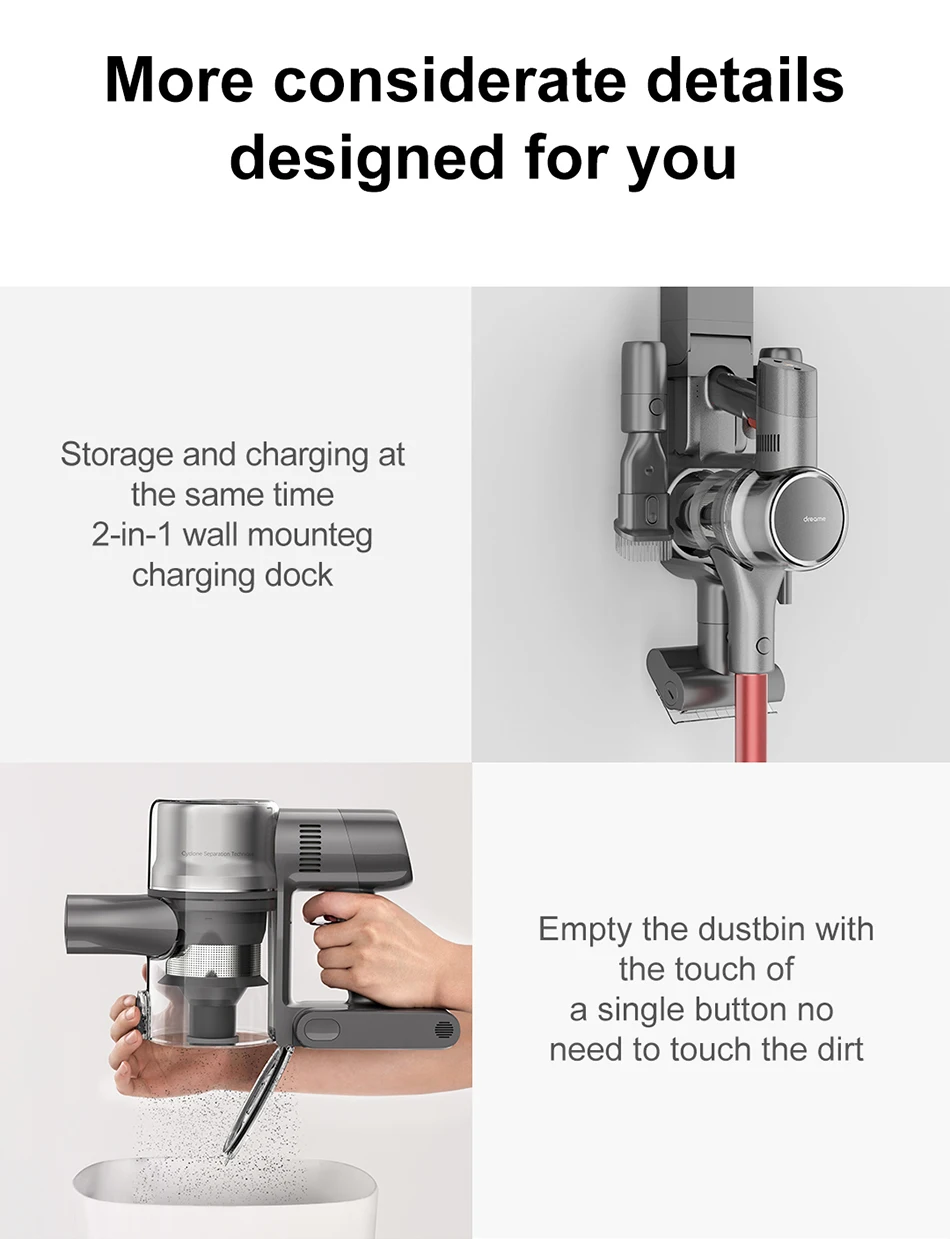 Dreame T20 Ручной беспроводной пылесос для дома 25000 ПА мощный циклонный всасывающий щетка все поверхности все в одном пылесборник