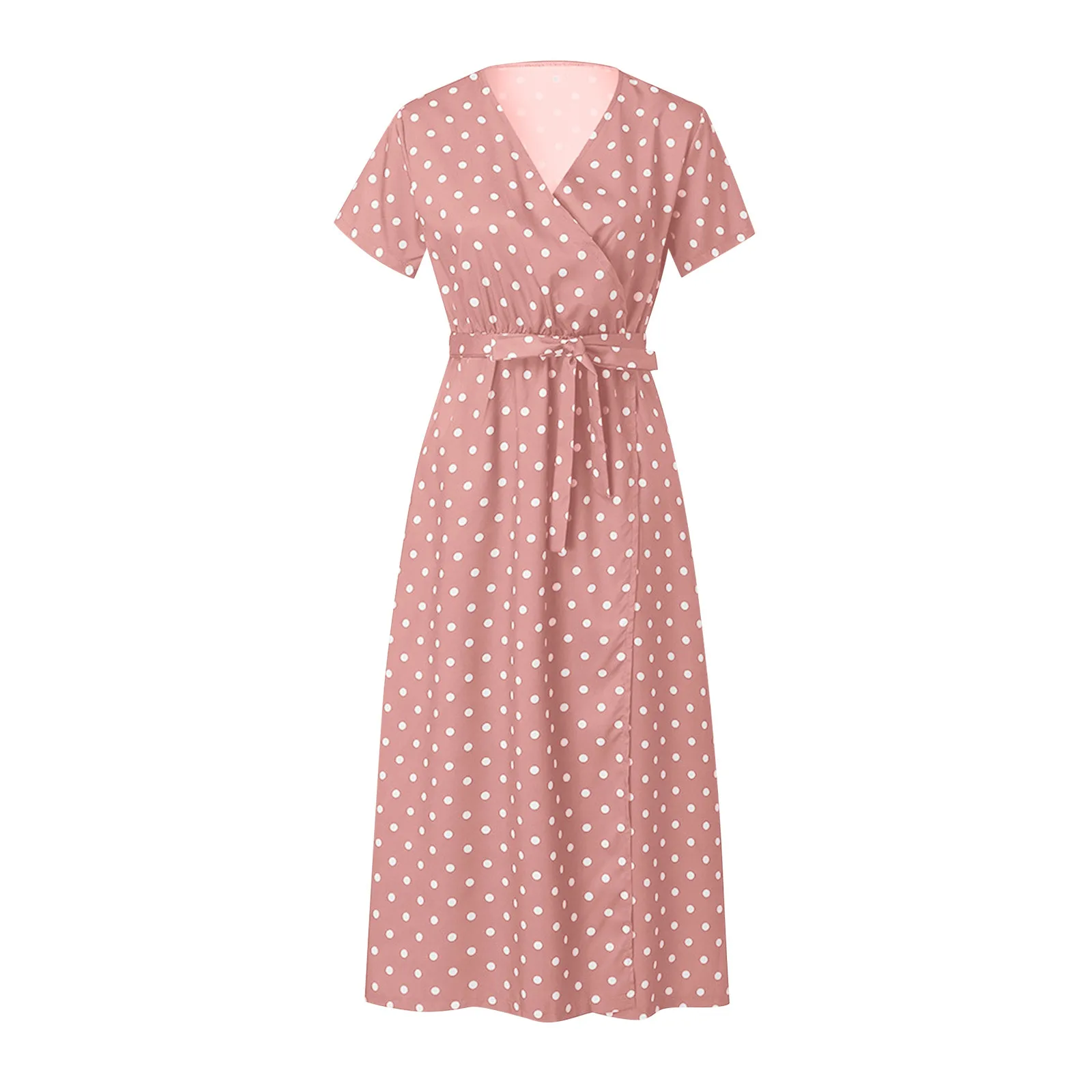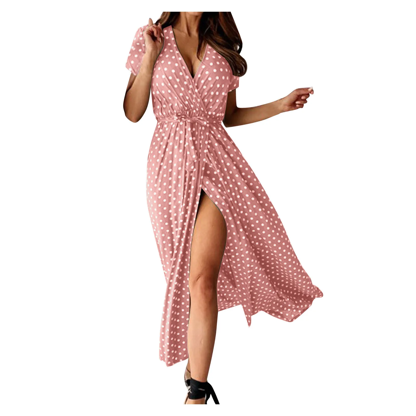 Женские летние платья 2021, платье в горошек с разрезом в стиле бохо, женская одежда, повседневные пляжные Длинные платья для отпуска, женское модное платье