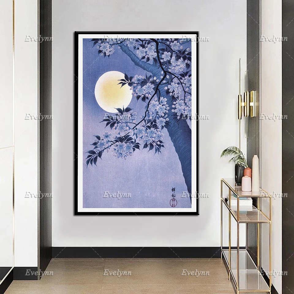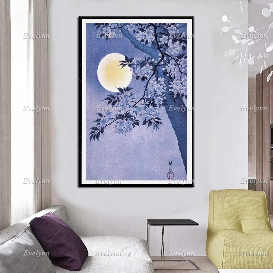 Цветущая вишня на лунном небе охара Косоншосон, японская Художественная печать на стене, холст, современный Декор для дома, плакаты, подарок