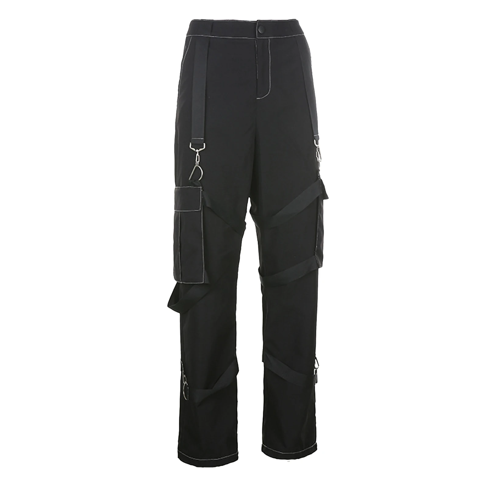 Модная женская обувь на каждый день с завышенной талией брюки с открытым стежком и карманами черный оснастки прямые детские брюки с карманами и с плетеным кружевом; Обувь с металлической пряжкой