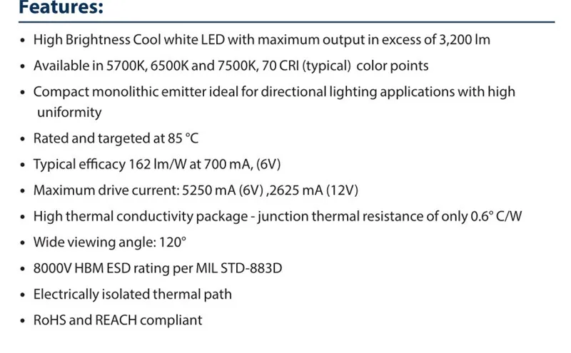 Подходит для Luminus SST-70-W светодиодный или Cree XHP70 / XHP70.2 6V светодиодный