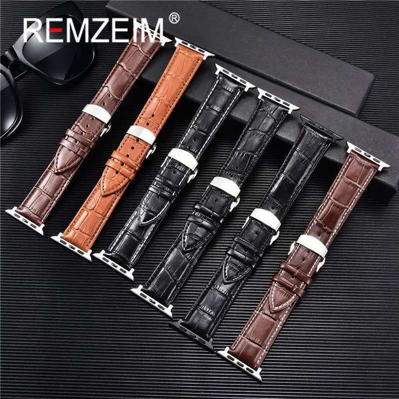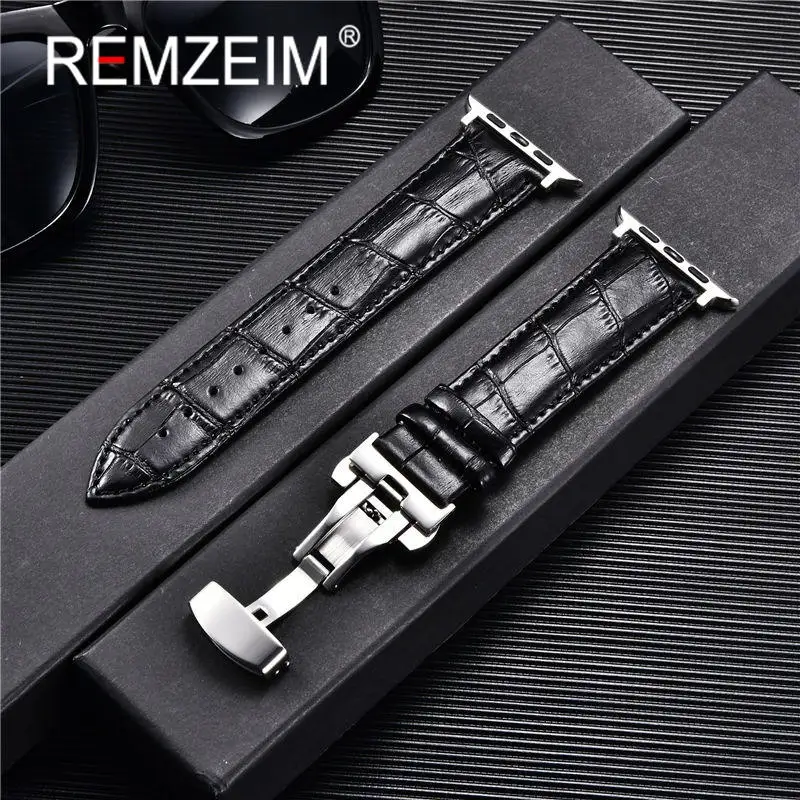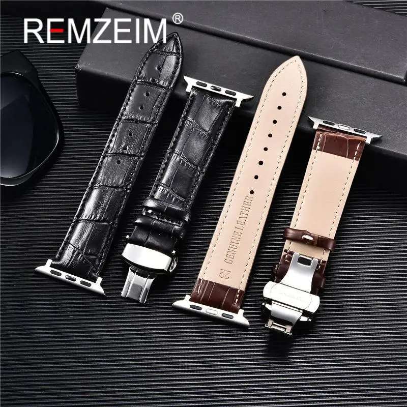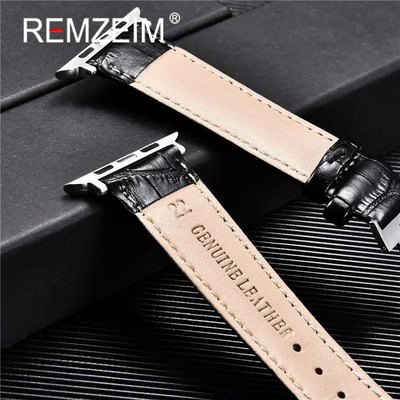 Ремешок REMZEIM из телячьей кожи для Apple Watch Series SE654321 42 мм 38 мм, браслет для часов Apple Watch iWatch 44 мм 40 мм