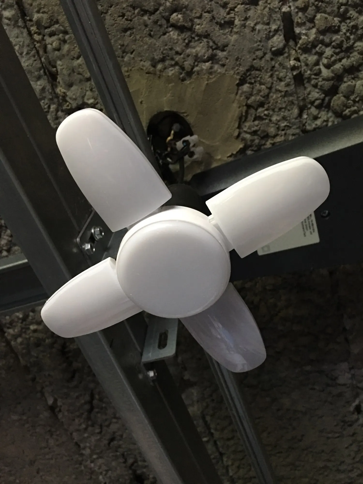 -Просты в установке: светодиодный гараж Потолочный светильник-просты в установке, просто прикрутил его в светильник разъем (в обычном режиме, обычный Американский светильник гнездо), и он был таким ярким. Это также поставляется с удлинителем, позволяющим вам сбросить светильник на несколько дюймов вниз от розетки.