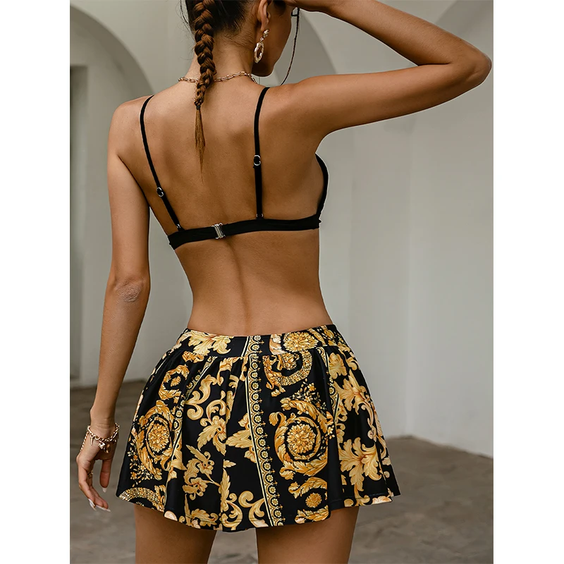 Женский купальник с юбкой Пейсли, комплект из 3 предметов, черный т...