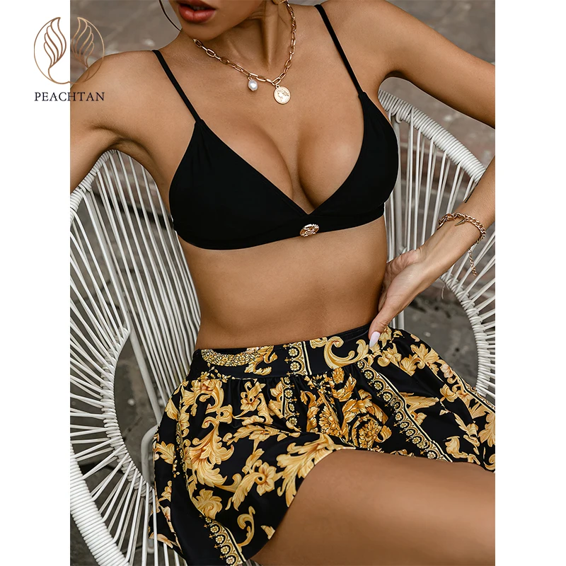 Peachtan юбка бикини 2021 купальник с высокой талией, женские купальные костюмы с узором пейсли женский строка банный костюм с открытой спиной, купальный костюм