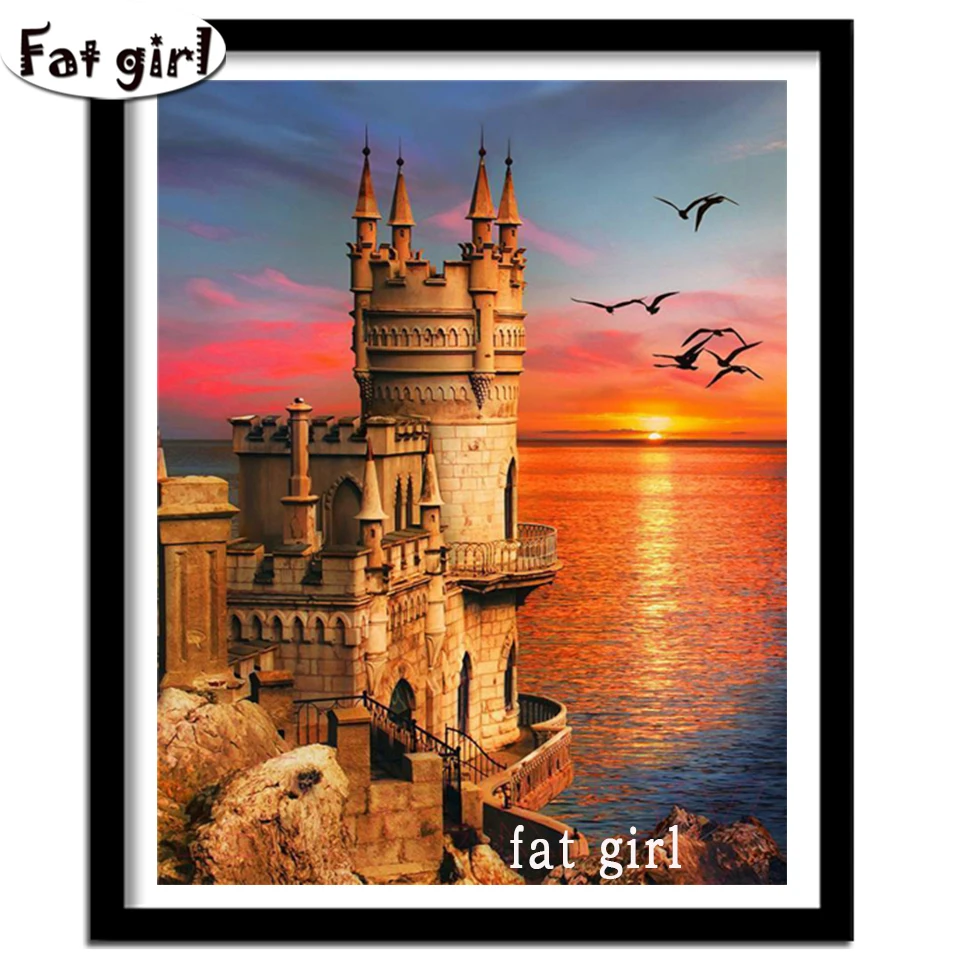 Алмазная мозаика для морского замка, пейзажа заката, алмазная вышивка, квадратные круглые стразы, ручная работа, домашний декор