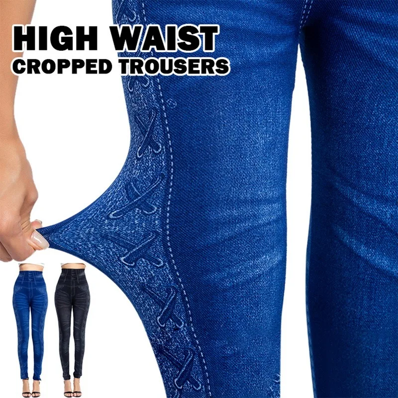 Размера плюс 3XL Высокая талия из искусственной кожи на весну и осень джинсовая Леггинсы Узкие эластичные бесшовные облегающие джинсы-карандаши голубого цвета брюки женские тренировки Леггинсы
