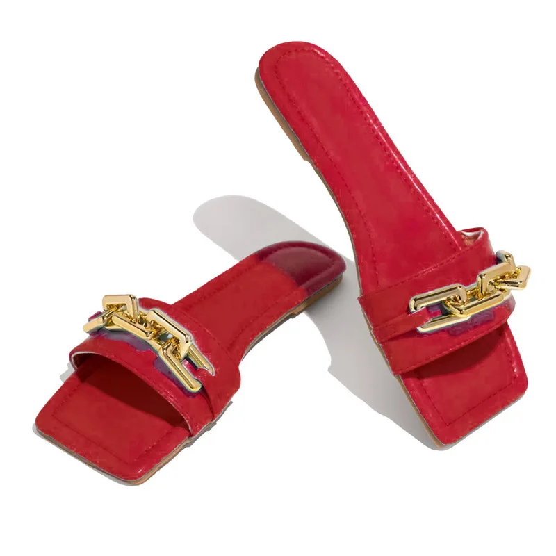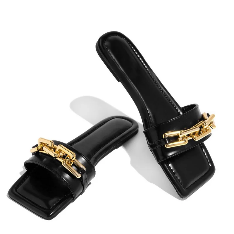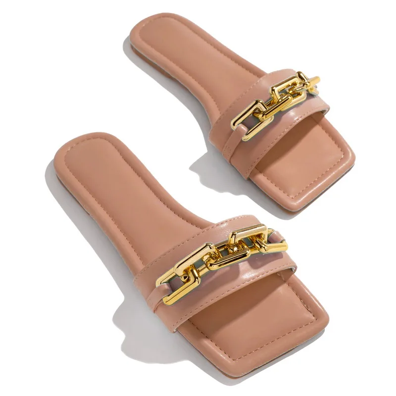 Шлепанцы женские Dihope, с закрытым носком, на плоской подошве, с золотой цепочкой, размера плюс