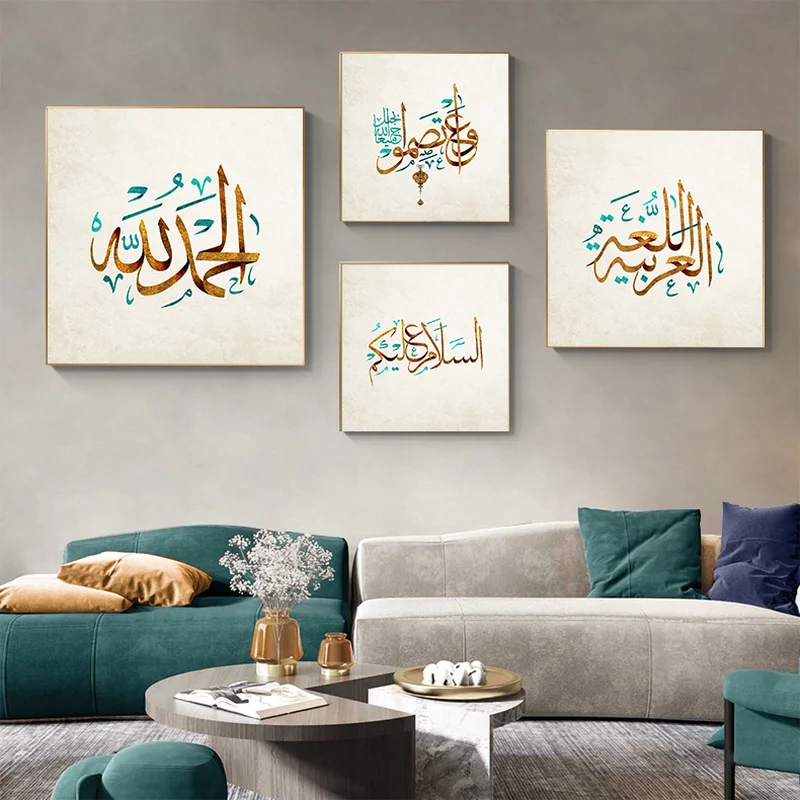 Плакаты и принты с буквами Корана, настенная живопись на холсте, му...