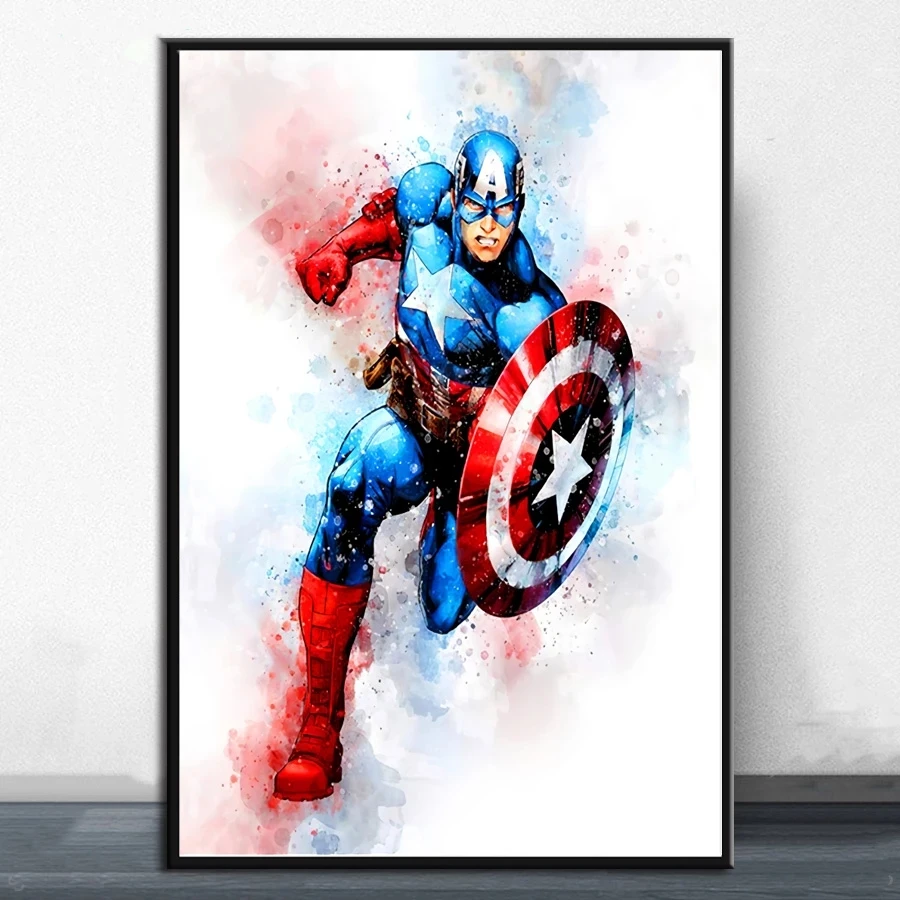 Акварельная картина Marvel Мстители Железный человек Человек-паук, ...