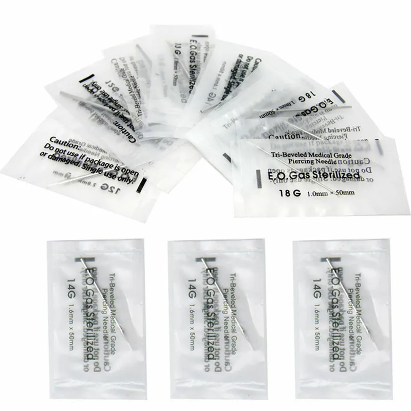 10 шт.компл. одноразовые иглы для пирсинга татуировок 12 г14 г16 г18 г20 г для пупка сосков ушей носа губ иглы для пирсинга набор инструментов