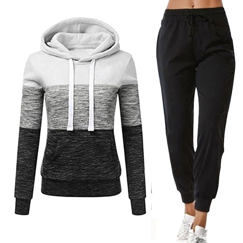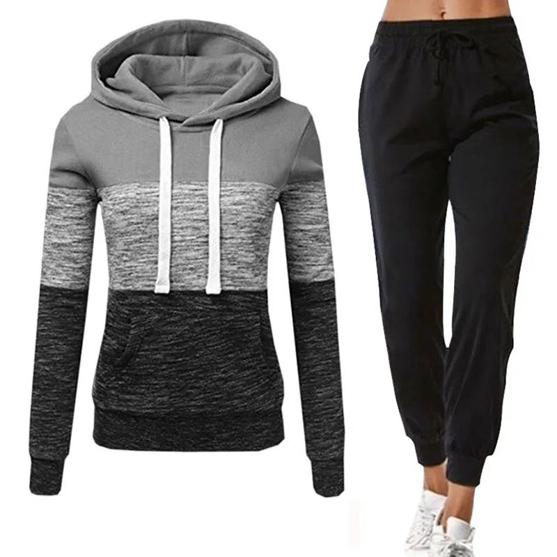Осенний женский спортивный костюм, комплект из 2 предметов, куртка на молнии в стиле пэчворк, толстовка + штаны, спортивная одежда, женский спортивный костюм, зимняя одежда