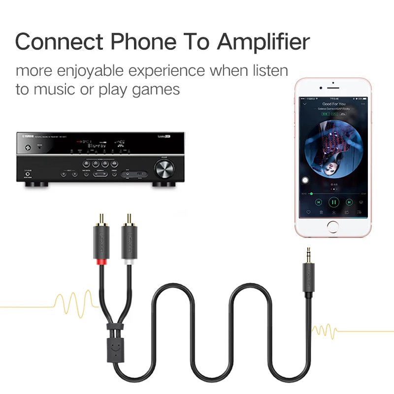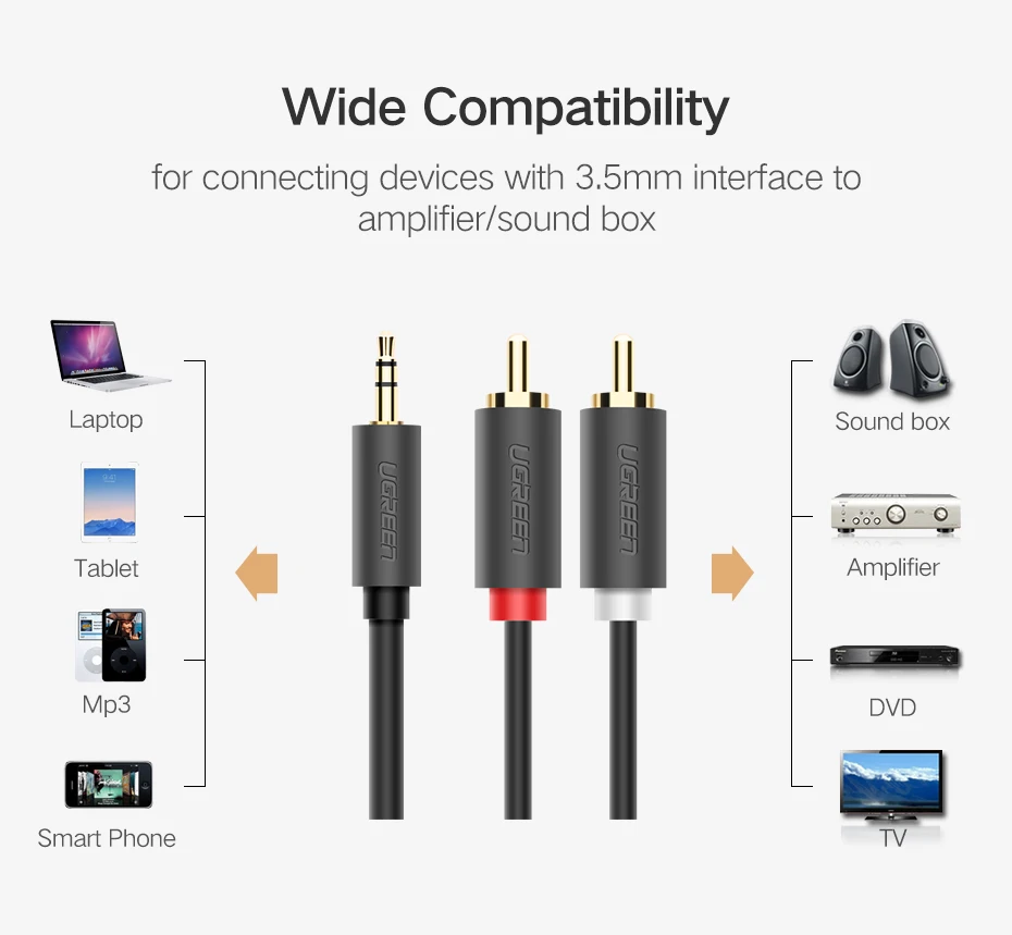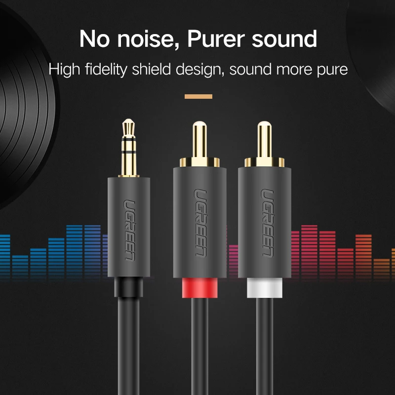 Кабель Ugreen RCA с разъемом 3,5 мм, 2 RCA штекера на 3,5 мм штекер, аудио Aux кабель для ТВ, усилителя Edifer, домашнего кинотеатра, DVD наушников