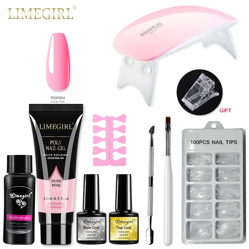 Набор ногтей Limegirl для маникюра с УФ светодиодный Ной лампой и базовым покрытием, 100 шт., лечебный гель-набор гелей для ногтей, лак для нейл-арта