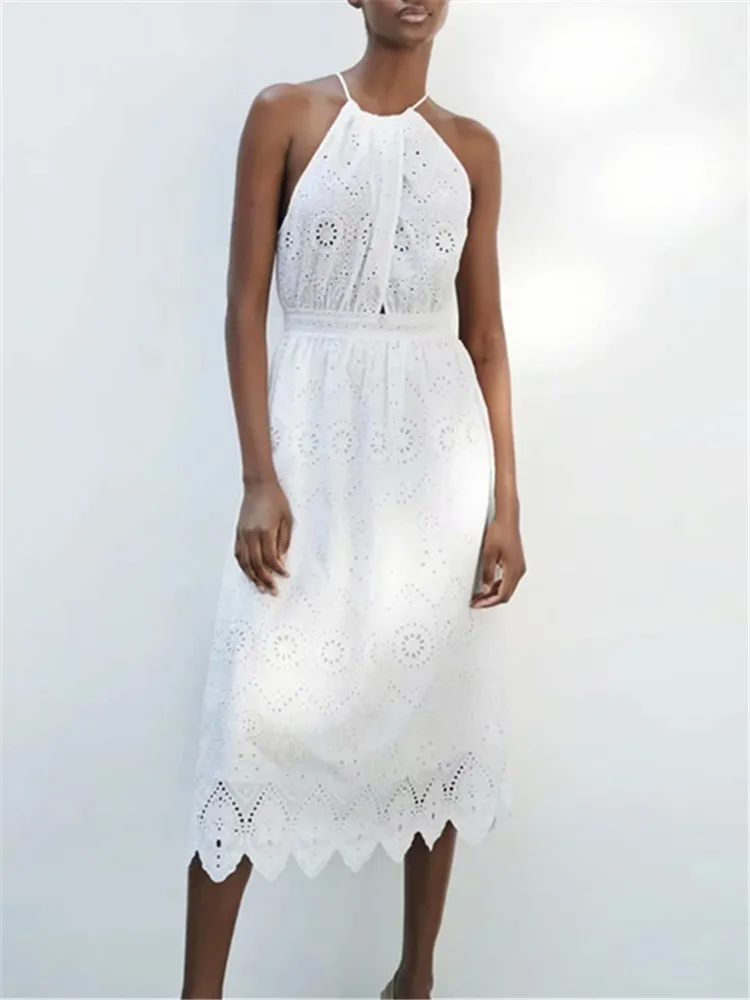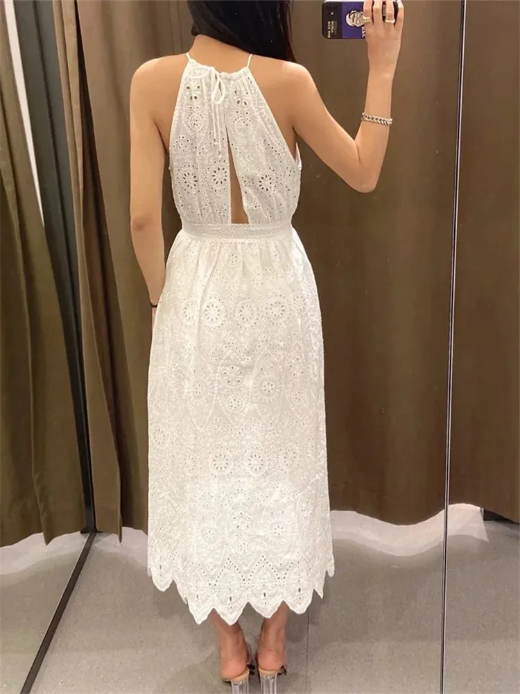 Новинка 2021, женская одежда в европейском и американском стиле, ажурное платье с вышивкой на раннюю весну для девочек, белое платье с вырезом на талии