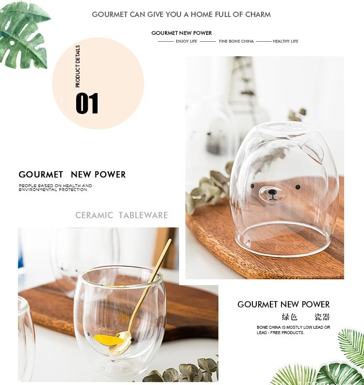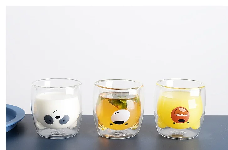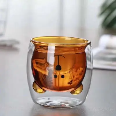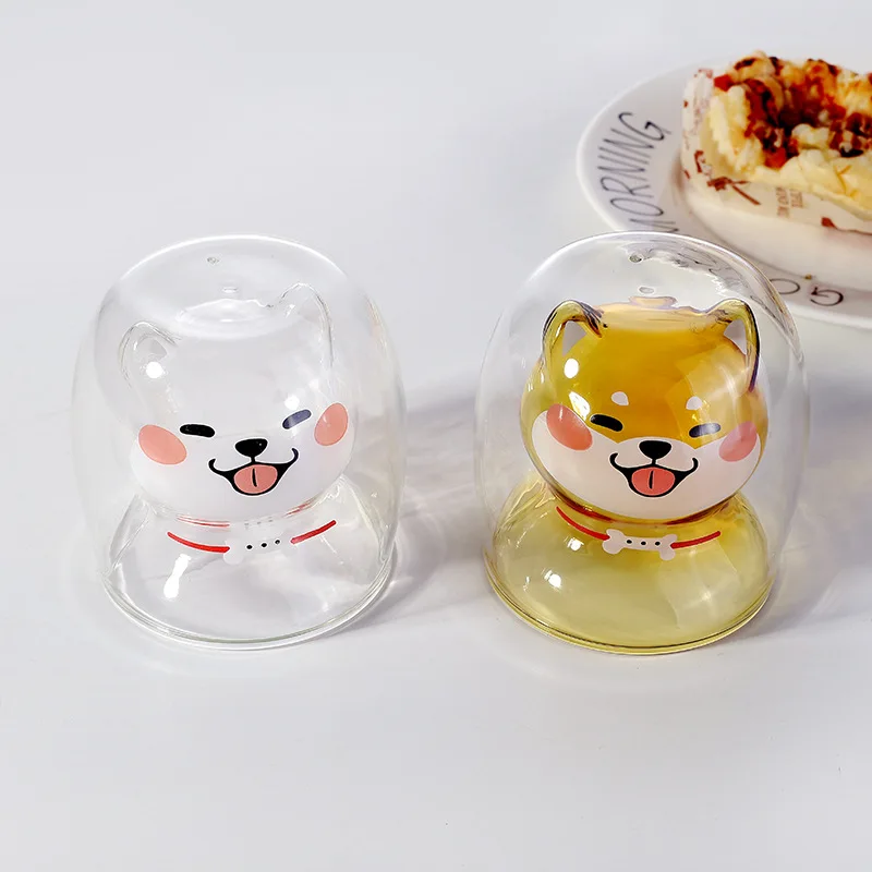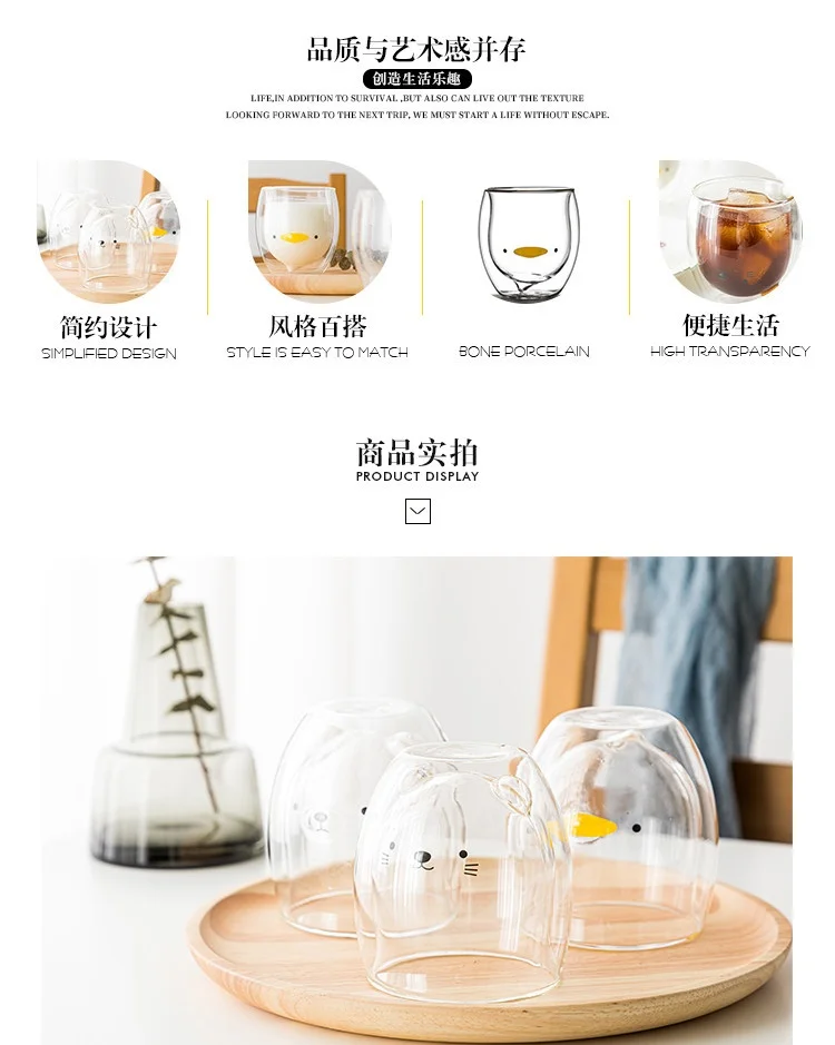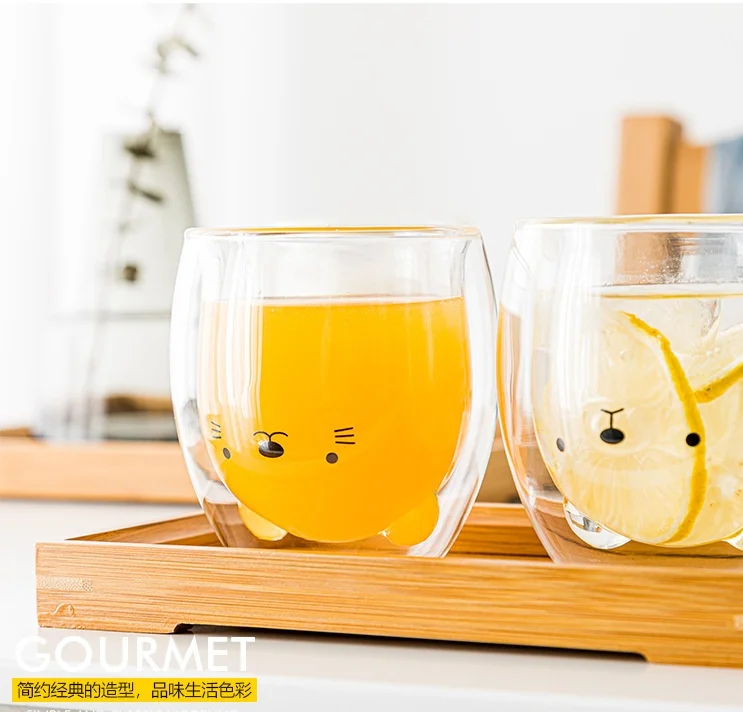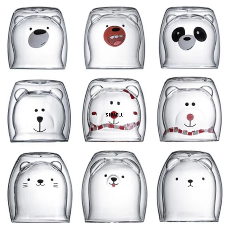 Стеклянные кружки, стеклянная кружка с двойными стенками, двухслойная стеклянная кружка с изображением медведя, кота, собаки, животного, кофейная кружка, Рождественская кружка, милый молочный стакан