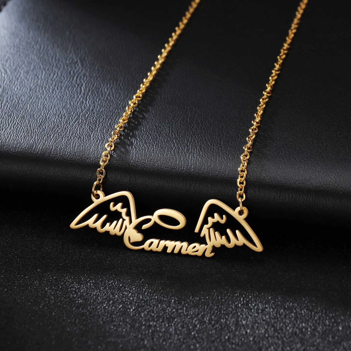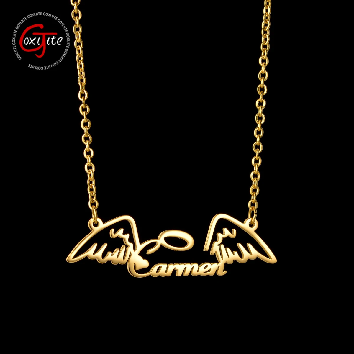 Модное ожерелье Goxijite с именем на заказ с крыльями, персонализированные Крылья ангела, именная табличка, Очаровательное ожерелье для девушки, прекрасный подарок