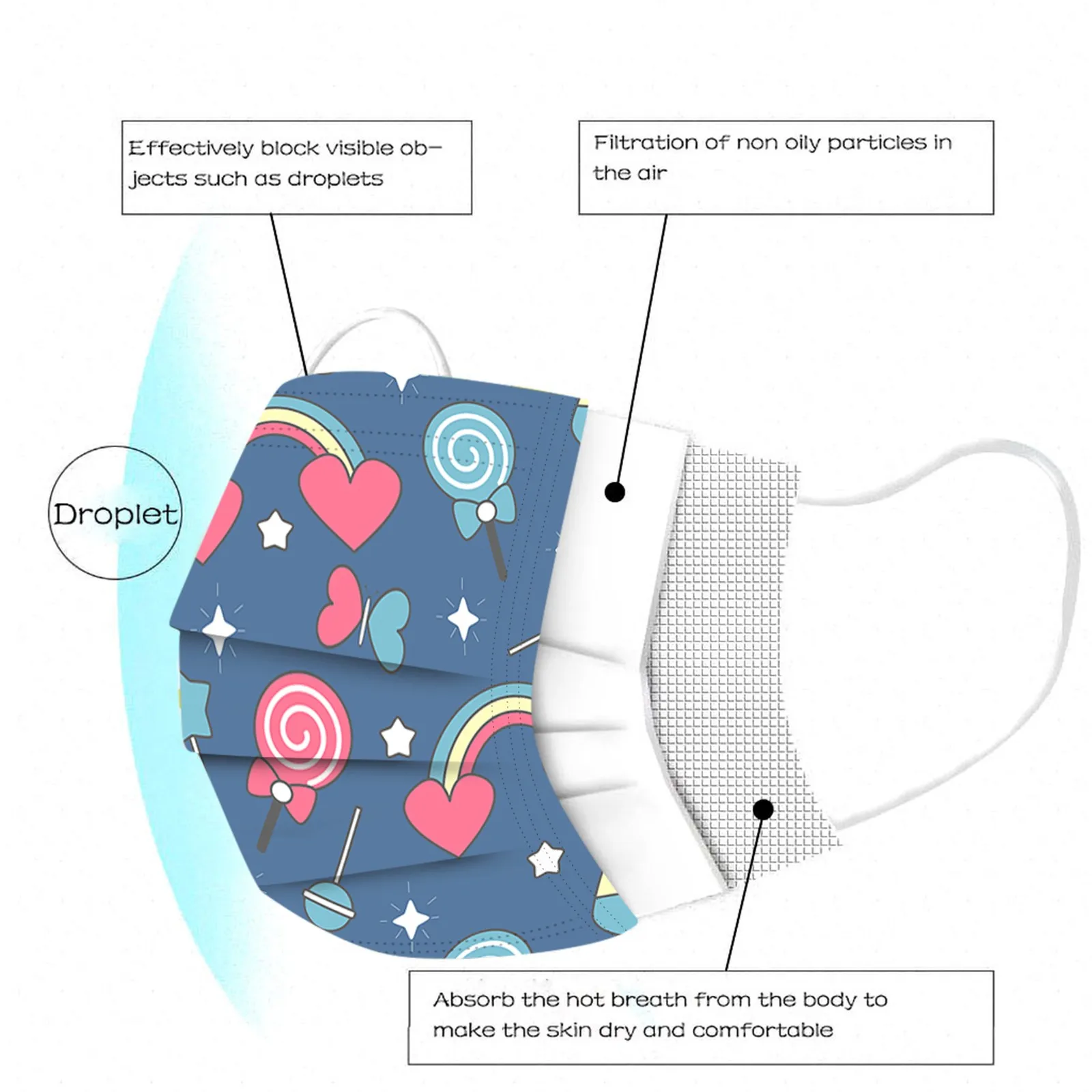 10-50 шт. одноразовые маски для детей с принтом радуги 3 Слои фильтр сварочная маска для лица из дышащей ткани Симпатичные маски Mascarillas