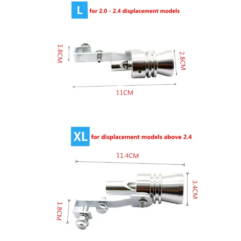 Особенности:Легко установить, красивый внешний вид, очень модный, низкая стоимость, является первым выбором для декоративной машины.Длина изделия-это только длина свистка, а не длина фиксированной оправыШироко используется для всех моделей автомобилей.При выборе подходящего размера лучше выбрать больший размер.Для небольшого выходного объема автомобиля лучше выбрать большой размер, для большого выходного объема автомобиля, лучше выбрать немного меньше, потому что принцип звука свистка заключается в том, чтобы полагаться на поток воздуха, большое смещение, чем больше свисток, тем больше вероятность звука.Сделайте звук вашего автомобиля как турбо-транспортное средство с турбо-системой или выдувным клапаномХарактеристики:Материал: алюминиевый сплавЦвет: серебристыйРазмер: SРазмер изделия: прибл. 10,5 X1.8 X 1,8 смВес нетто: прибл. 69 гРазмер: MТип изделия: глушительРазмер изделия: прибл. 10,7 X 2.3X 1,8 смВес нетто: около 78 гРазмер: LРазмер изделия: прибл. 11X2,8X1,8 смВес нетто: Approx.102gРазмер: XLРазмер изделия: прибл. 11,4X3,4X1,8 смВес нетто: около 128 гПримечание:Возможны отклонения в 1-3 мм вследствие измерений вручную.Из-за различных дисплеев и различного светильник, изображение может не отражать фактический цвет товара. Спасибо за понимание.