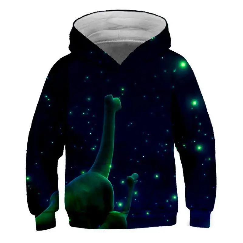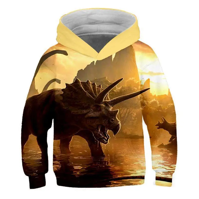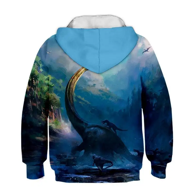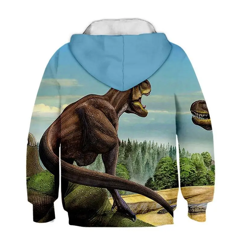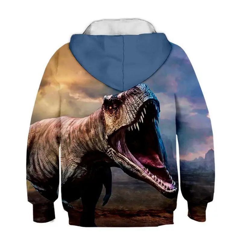 Толстовка с капюшоном для мальчиков и девочек, с рисунком динозавра, Осень-зима, для подростков
