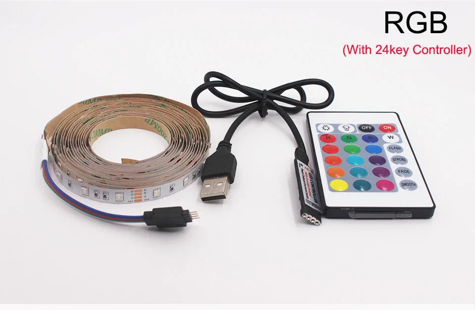 Гибкая светодиодная лента RGB с 24 клавишами, 5 м, 2835, USB светил...
