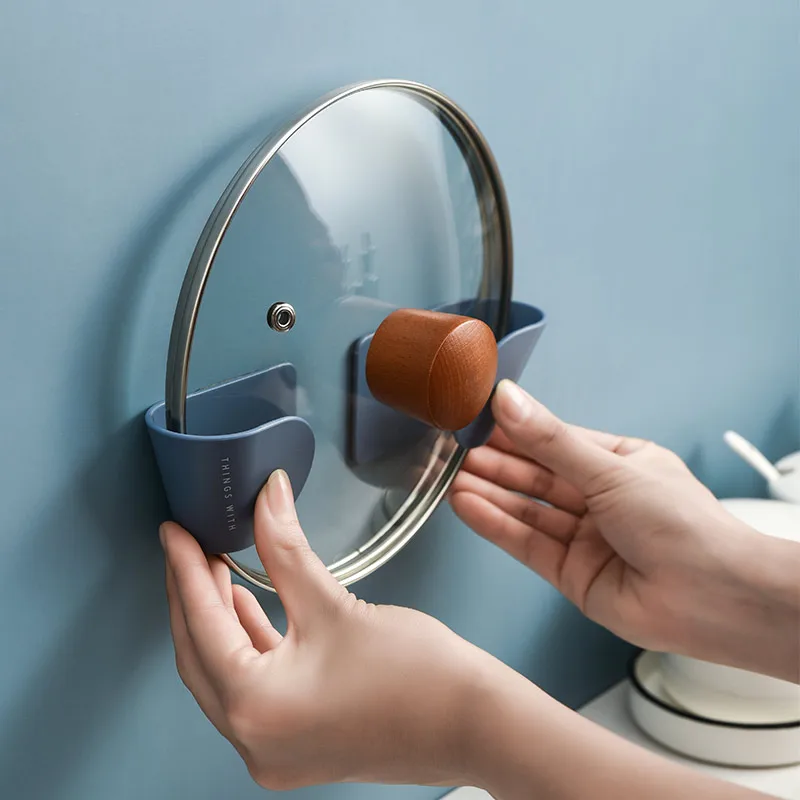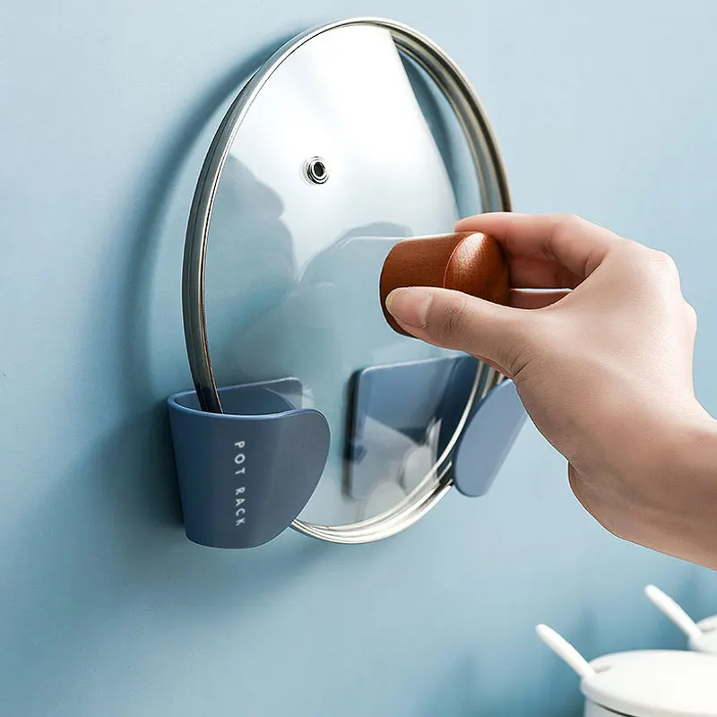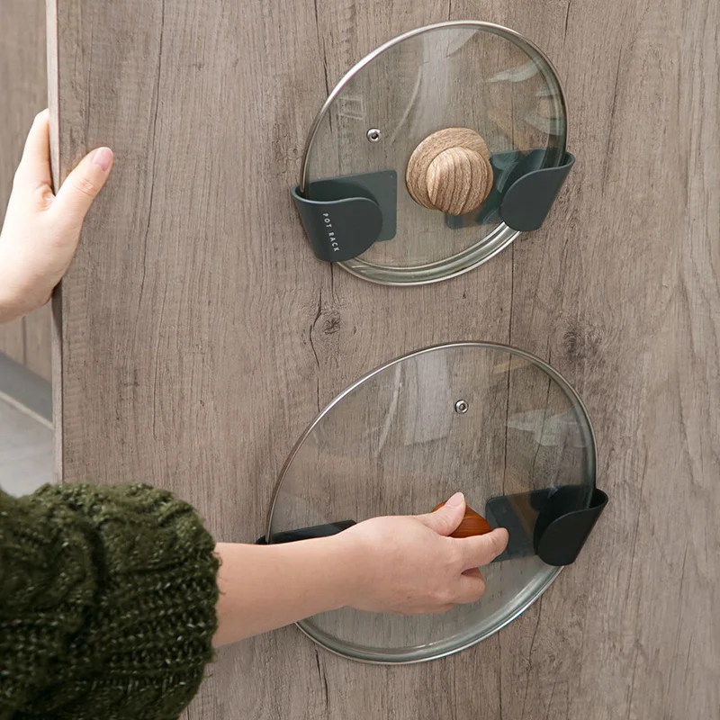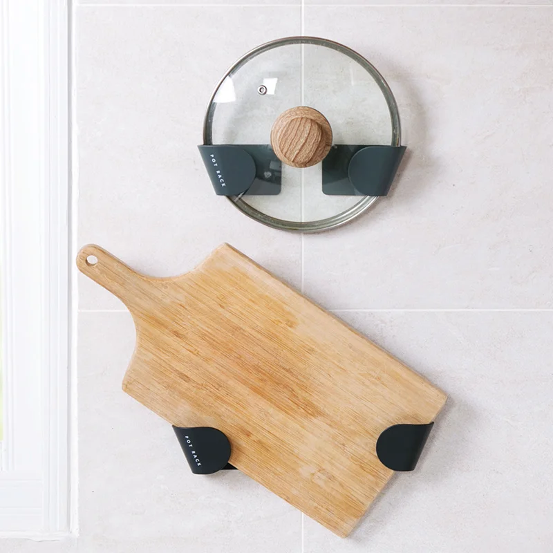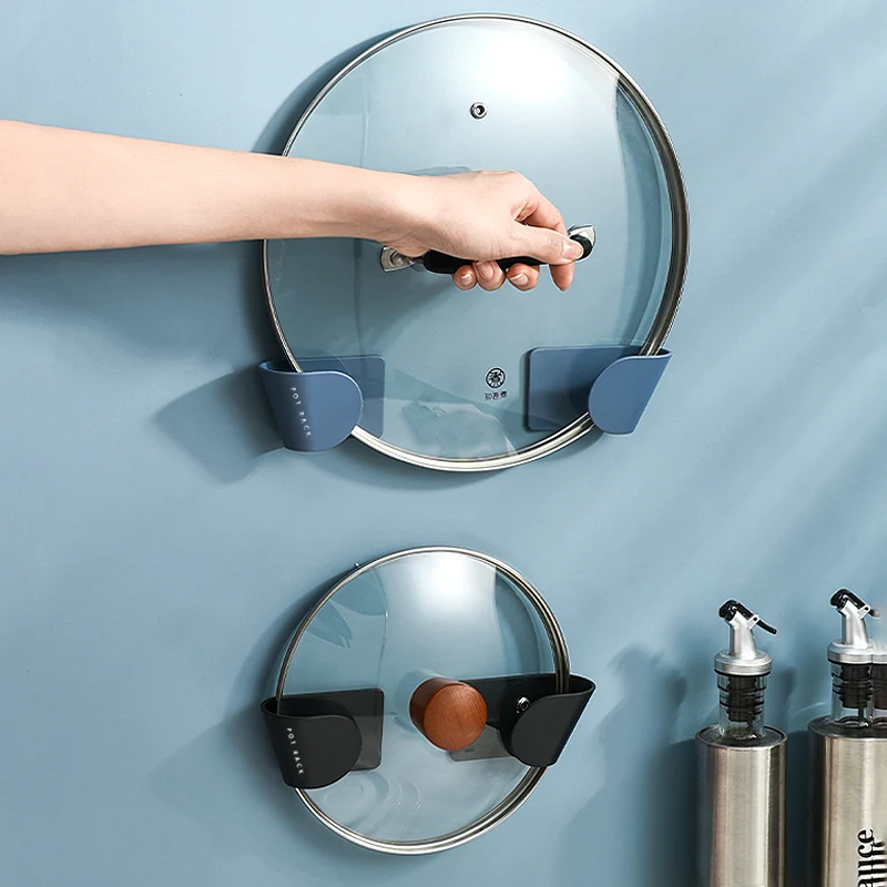 2 шт.компл. самоклеющиеся горшок крышкой держатель перфорация кастрюлю крышкой стеллаж для хранения Настенный Кухня Пособия по кулинарии инструмент Органайзер стеллажи для выставки товаров