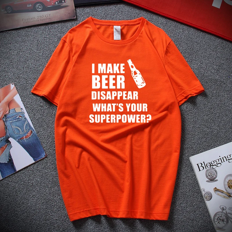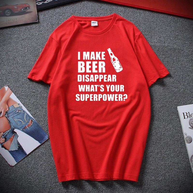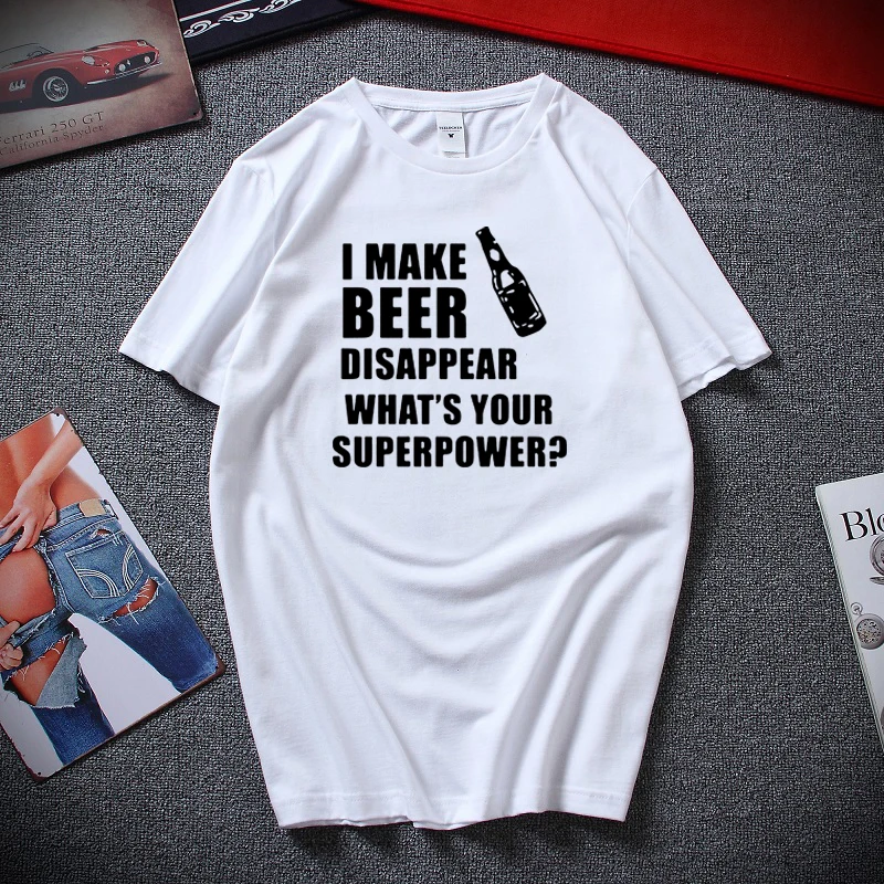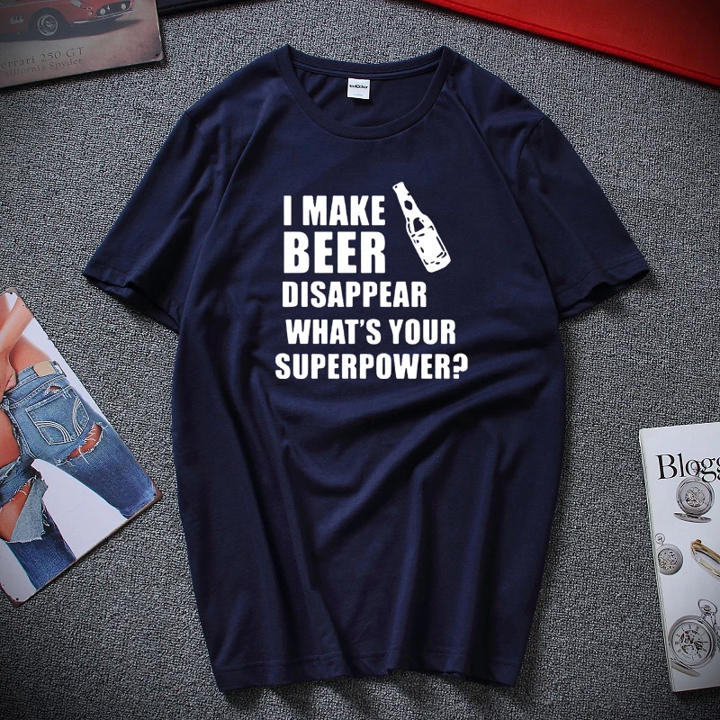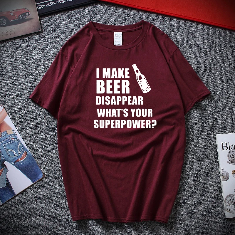 Футболка с надписью I Make Beer Disappear, Подарочная футболка с надписью What's Your Superpower, мужские хлопковые топы с круглым вырезом, забавная футболка
