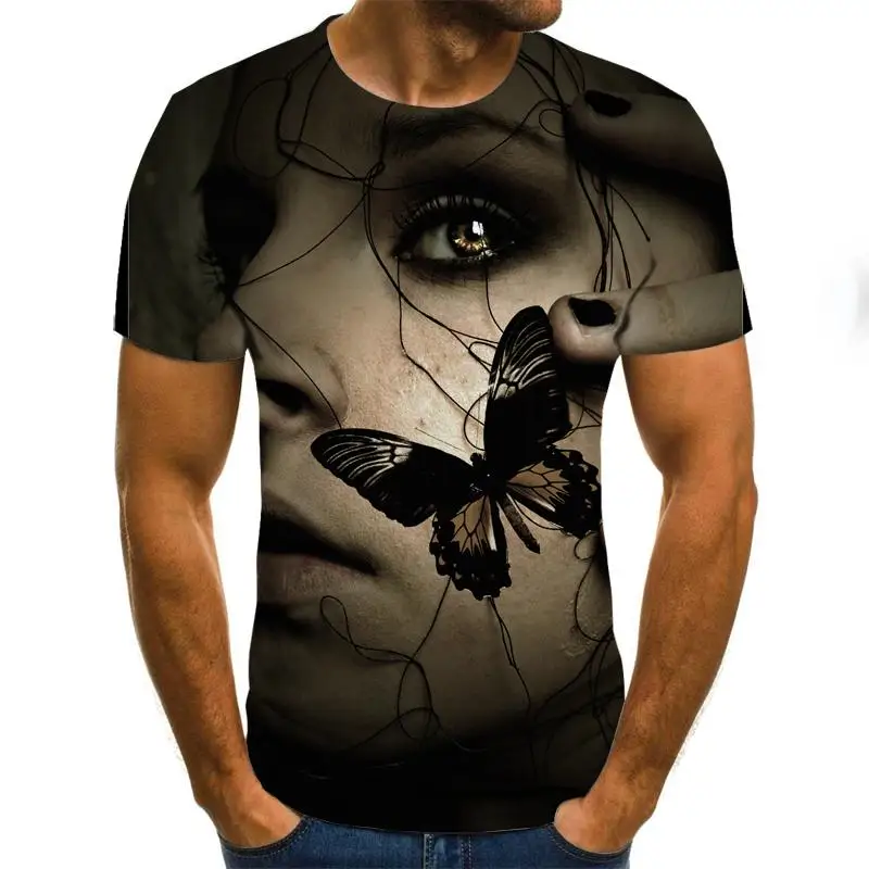 Летняя новая рубашка 3DT, Мужская Уличная Повседневная Черная футбо...