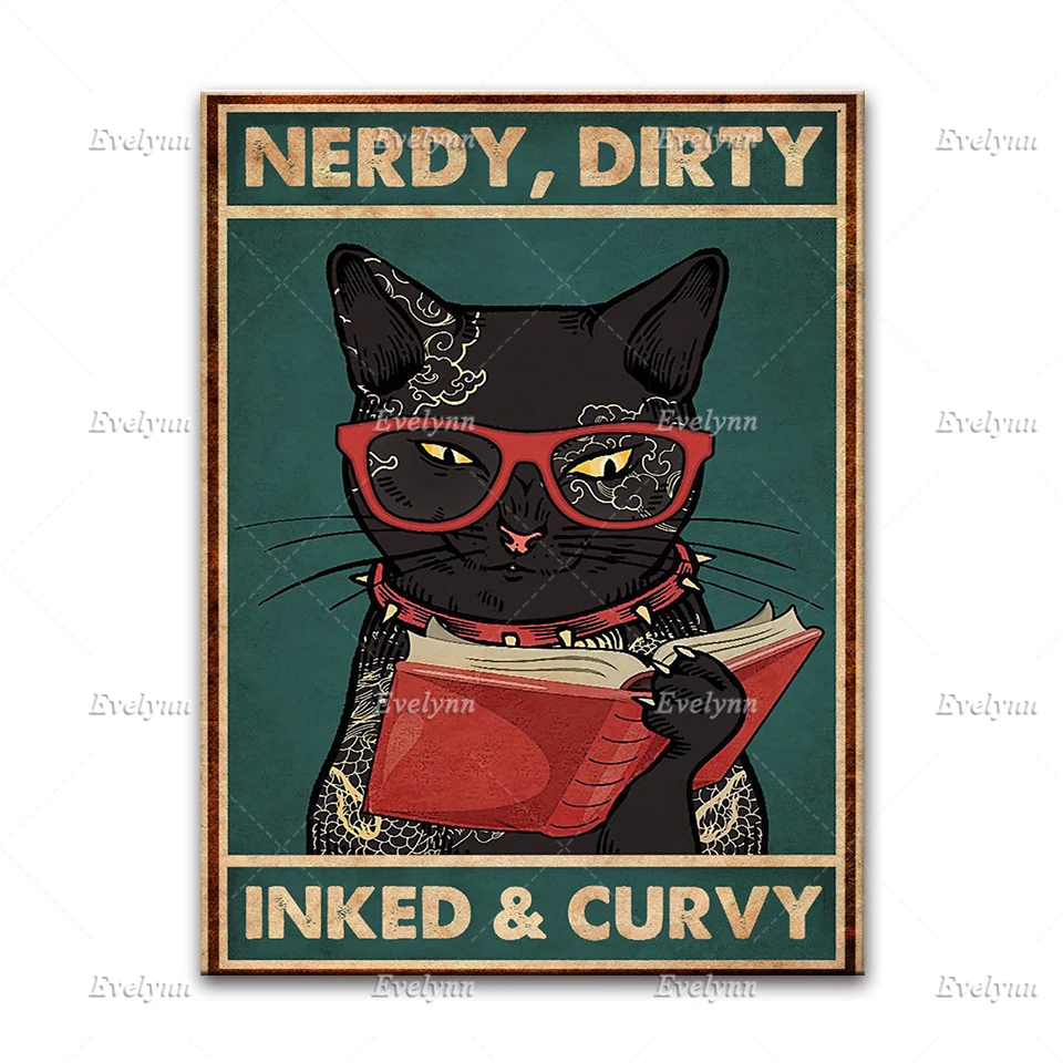 Постер в стиле ретро для влюбленных книги и черных кошек просто дев...