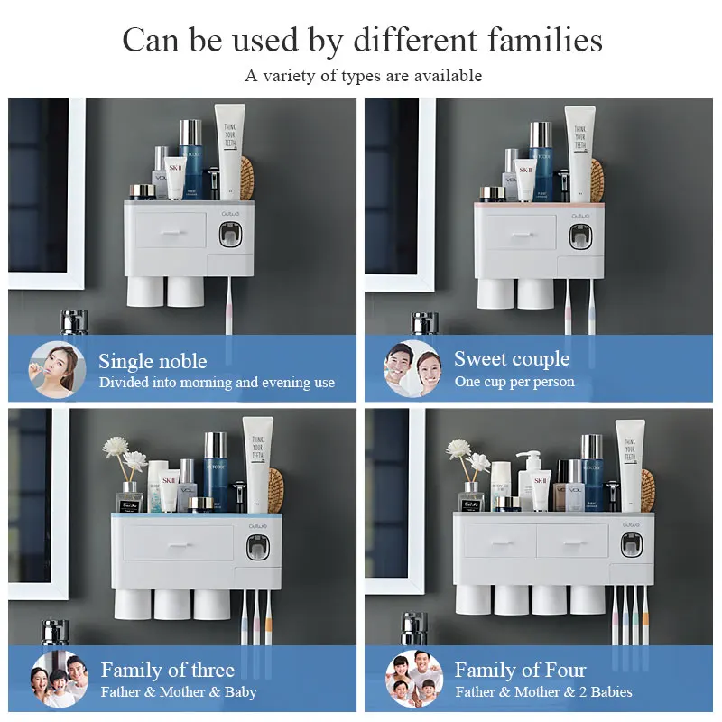 Настенный Зубная щётка Держатель автоматический диспенсер для зубной пасты для ванной ящиками косметический Органайзер с магнитной чашки инструменты