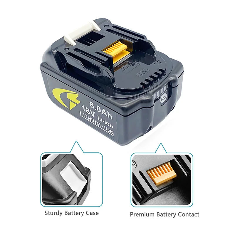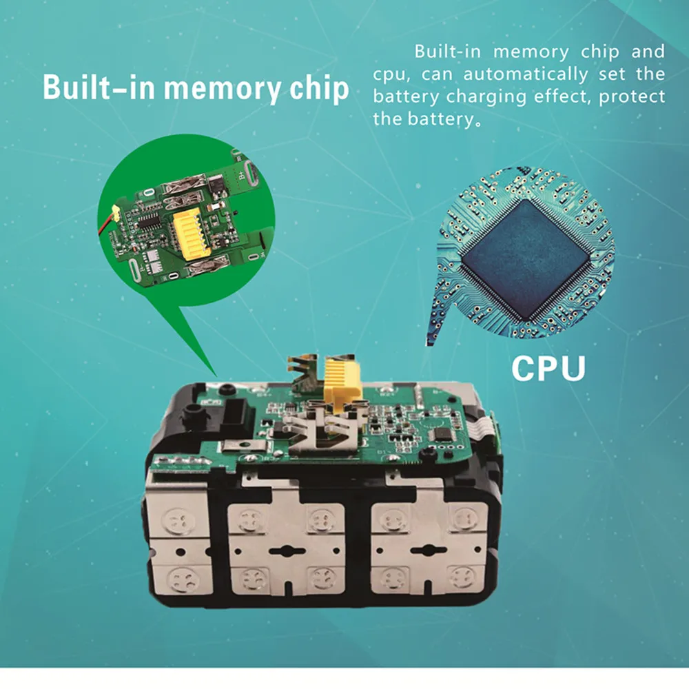 Модель: новейшая и безопасная сменная аккумуляторная батарея BL1860B для электроинструментов MakitaНоминальное напряжение: 18 вНоминальная мощность: Ач/АчТип аккумулятора: литий-ионный Особенности:1. Последнее обновление печатной платы с функцией определения баланса одной ячейки, может сделать все ячейки заряженными и разряженными, эффективно предотвратить перезаряд и переразряд каждой ячейки2. Встроенный чип памяти и процессор могут автоматически настроить эффект зарядки аккумулятора, защитить аккумулятор3. Защита функций от неправильного напряжения, короткого замыкания, внутреннего перегрева.4. Чехол из высококачественного материала, прочный и долговечный с ударопрочной конструкцией.5. Светодиодный индикатор, может узнать оставшуюся мощность в любое время.6.BL1860b обеспечивает до 3 раз больше времени работы на зарядку, чем аккумулятор 3,0 Ач.7. Сертификаты FCC,RoHS,CE,PSE и TUV.