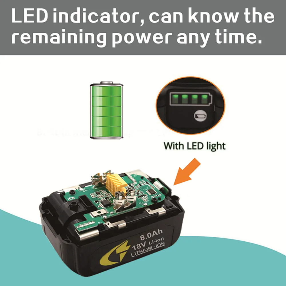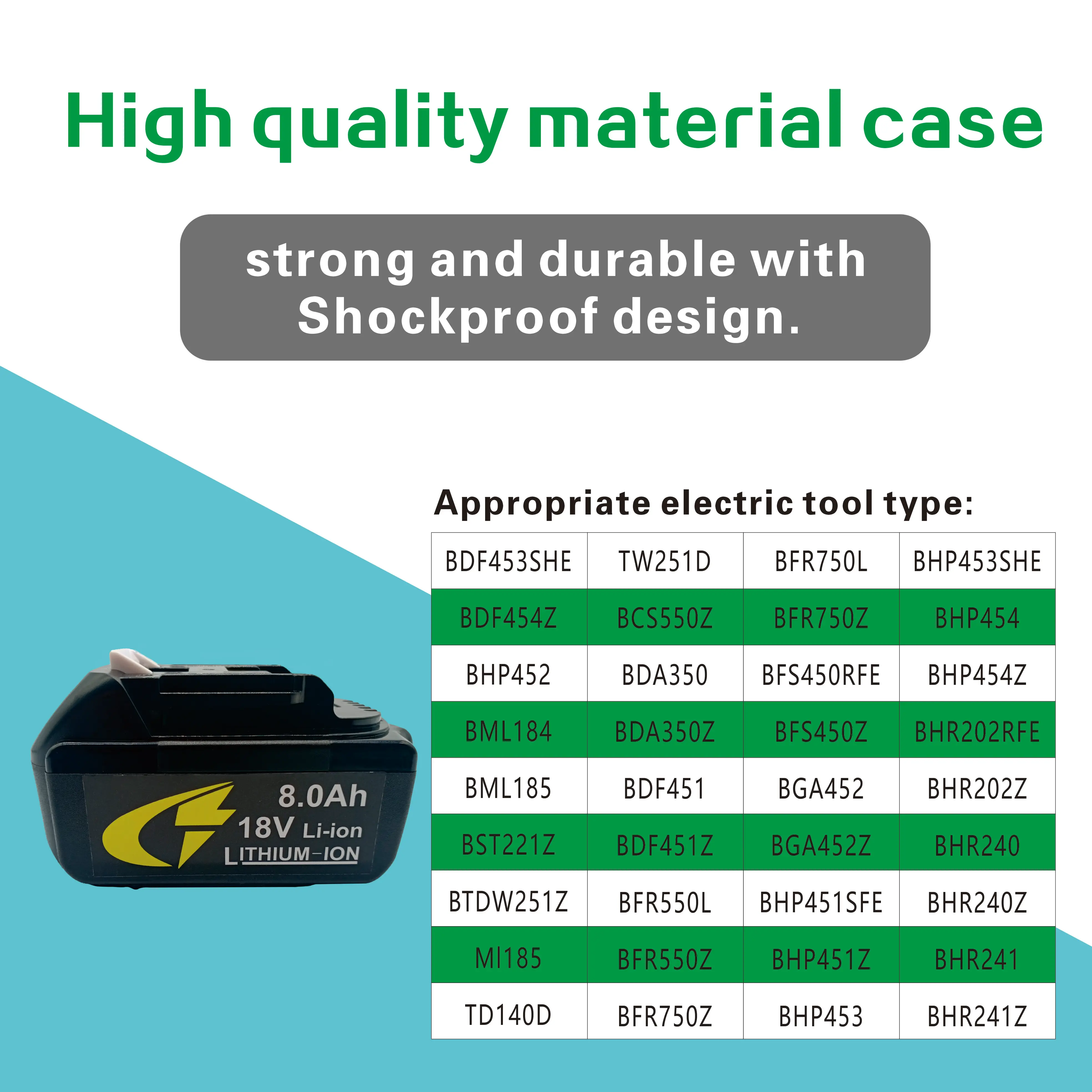 Перезаряжаемый литиевый аккумулятор BL1860, 18 в, 8,0 Ач, для электроинструмента Makita, аккумуляторы BL1815, BL1830, BL1840, BL1850, LXT 400, новейшая версия