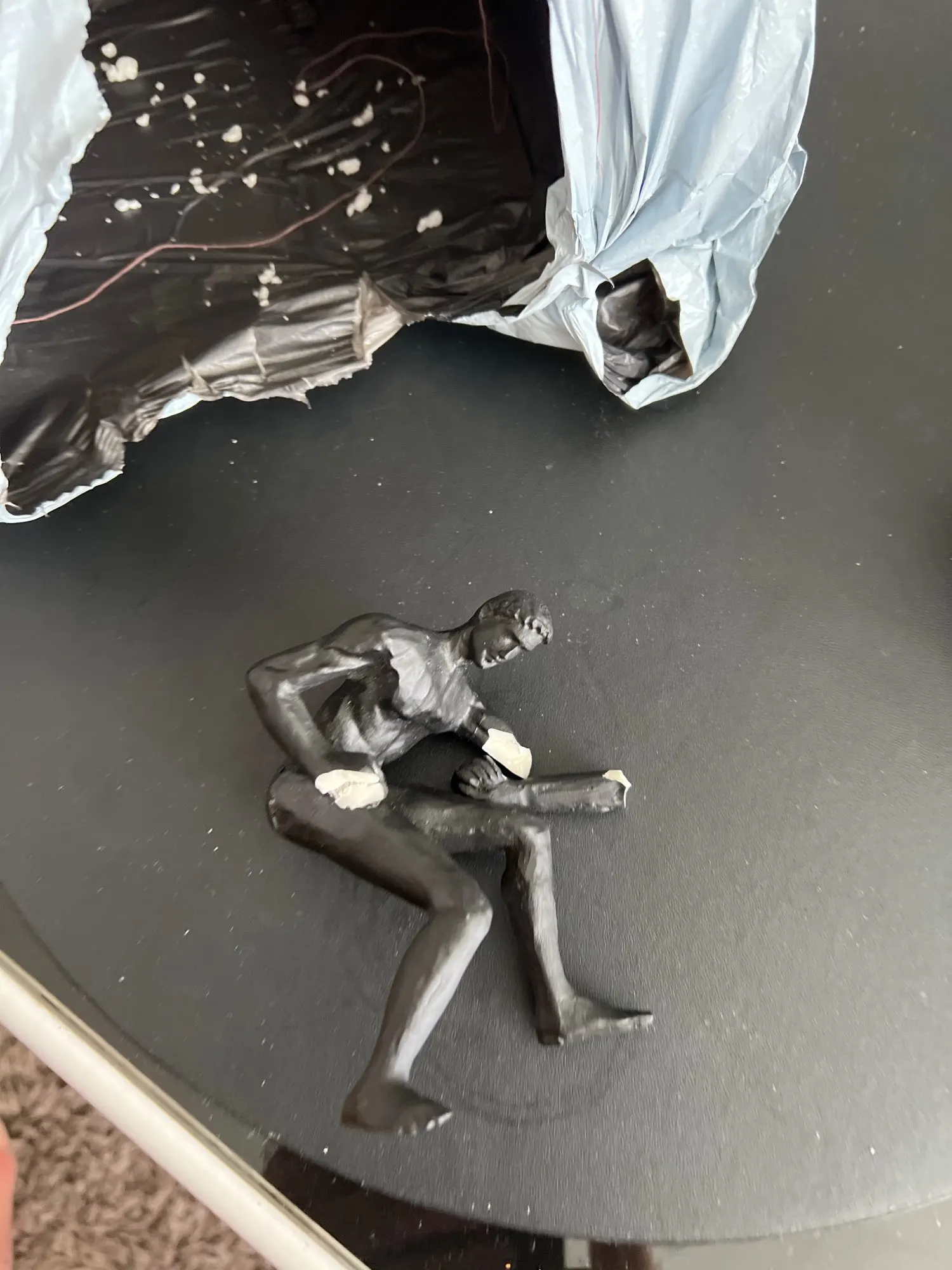 Прибыл поврежденный так, чтобы приклеить руку обратно, и отверстия в руках необходимо сверлить, как это не было сделано на заводе. В противном случае очень красиво выглядит
