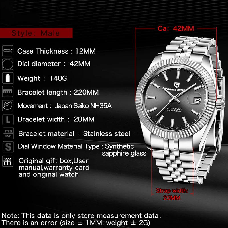 Фирменное наименование: дизайн PAGANIГлубина водонепроницаемости: 10 барПроисхождение: CN (происхождение)Тип застежки: скрытая застежкаСтиль: АнтичныйМеханизм: механический ручной ВетерМеханизм: автоматический самоветерДлина ремешка: 22 смМатериал корпуса: нержавеющая стальМатериал циферблата: сапфировое стеклоМатериал коробочек и чехлов: бумагаТип изделия: механические наручные часыДиаметр циферблата: 42 ммМатериал ремешка: нержавеющая сталь